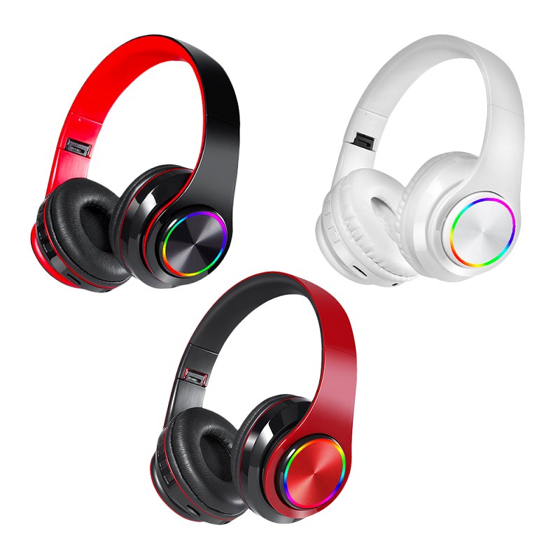 鴻嘉源 A6耳罩款藍芽耳機 頭戴式無線 5.0藍芽耳機 雙耳七彩炫光圈 重低音強化 折疊收納 藍牙耳機 運動耳機