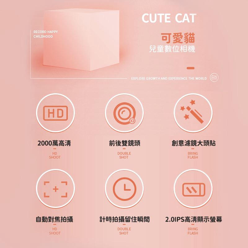 鴻嘉源 現貨 安全兒童雙鏡頭相機 送32G 迷你造型相機 2000萬像素 小型相機 攝影機 雙向拍照 錄影 記錄生活