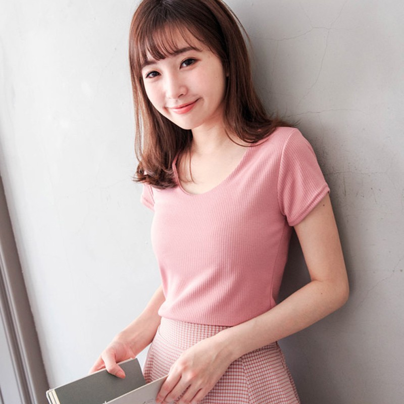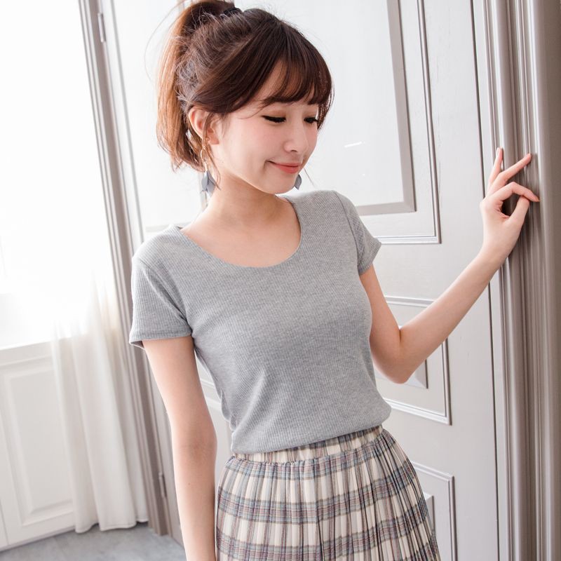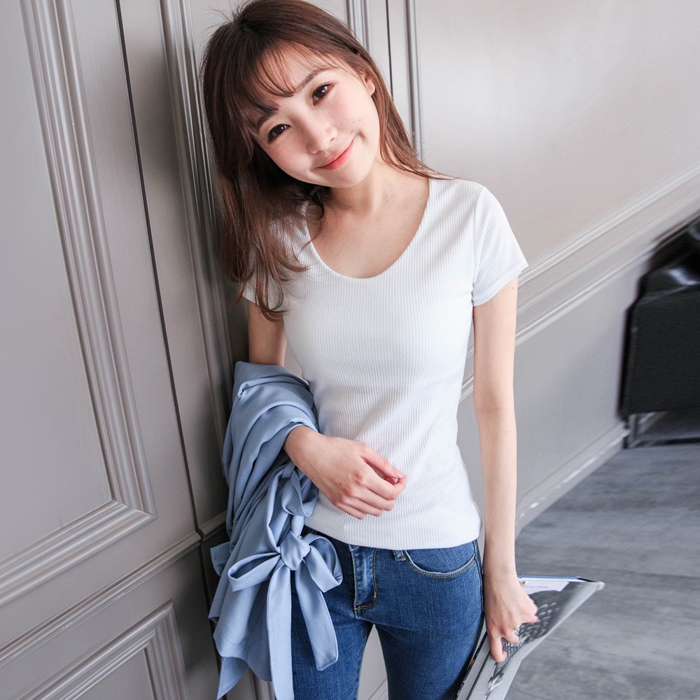 MIUSTAR 正韓 極簡合身剪裁圓領坑條棉質上衣(共4色)0323 預購【NJ0698RE】