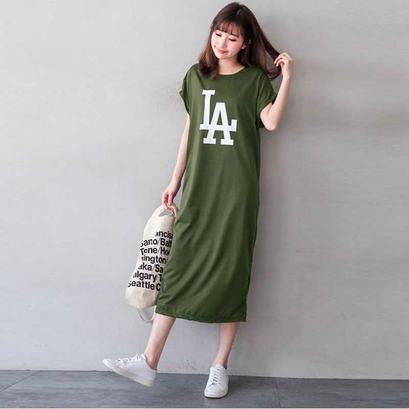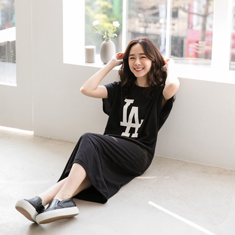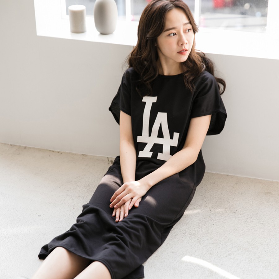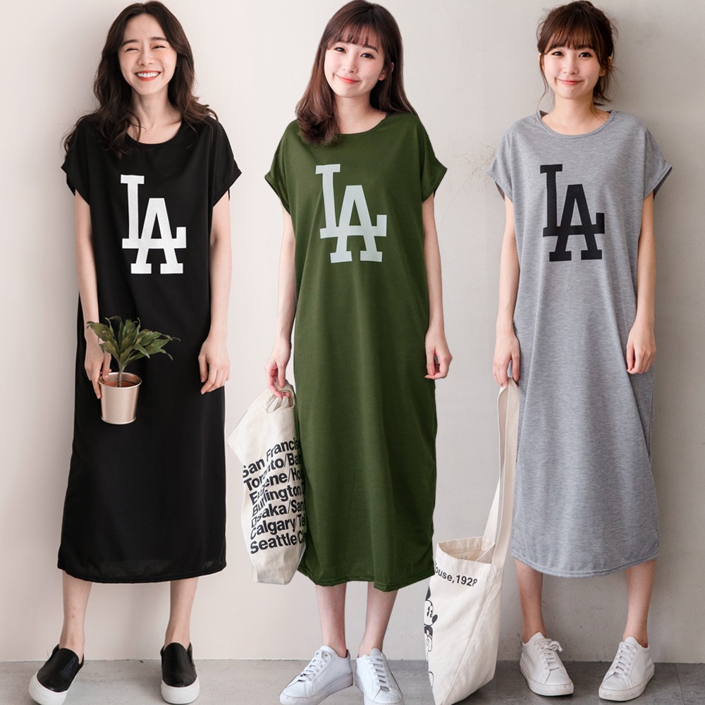 MIUSTAR 正韓 休閒LA膠印棉質長洋裝(共3色)0221 預購 【NL0185RE】