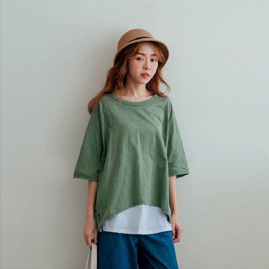 MIUSTAR 正韓 落肩寬袖素面竹節棉上衣(共4色0322 預購【NL0819RE】