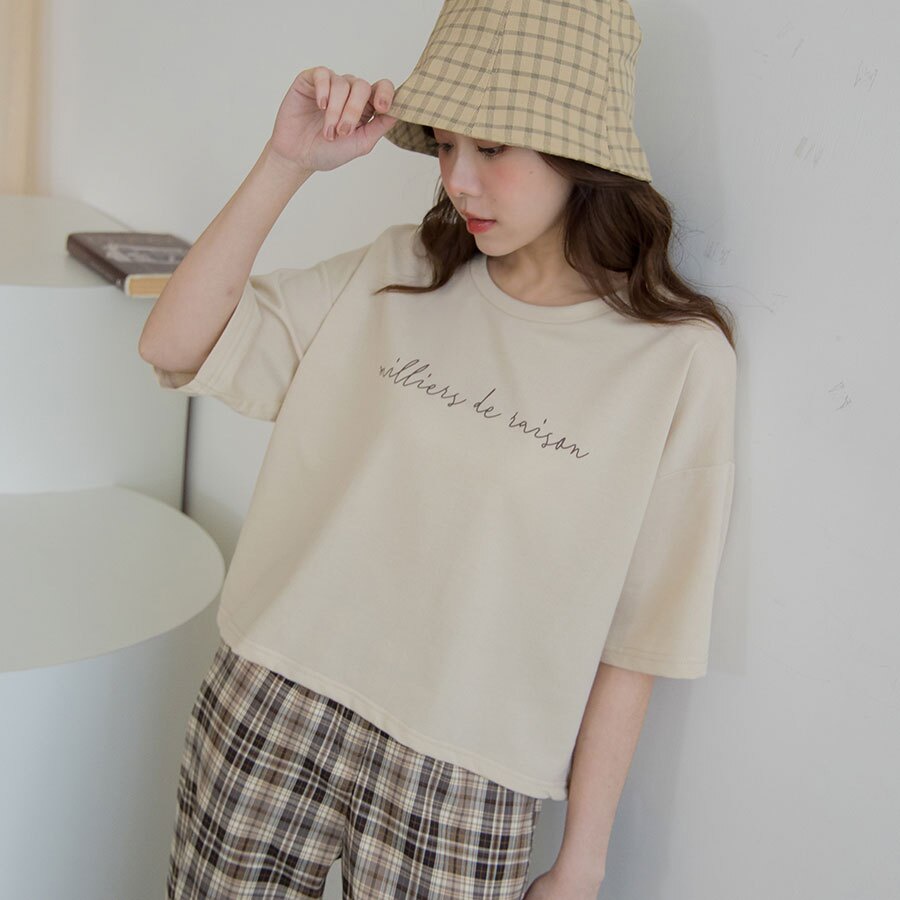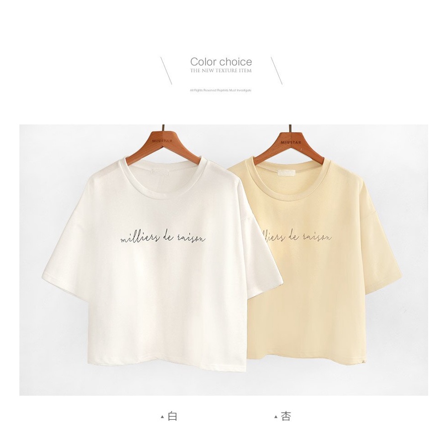 MIUSTAR 正韓 草寫英字膠印短版上衣(共2色)0301 預購 【NL0399RE】