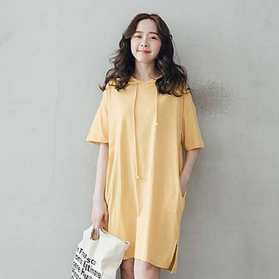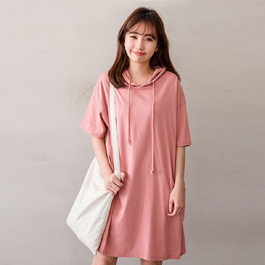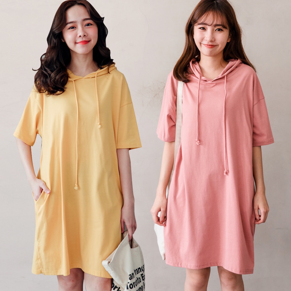 MIUSTAR 正韓 圓弧側口袋短袖連帽棉質洋裝(共4色)0322 預購【NL0793RE】