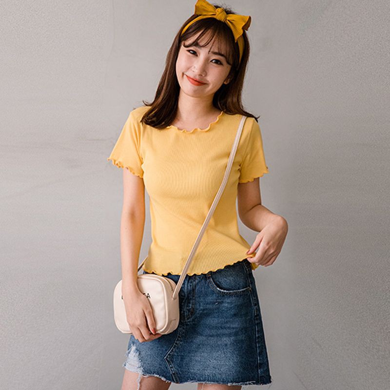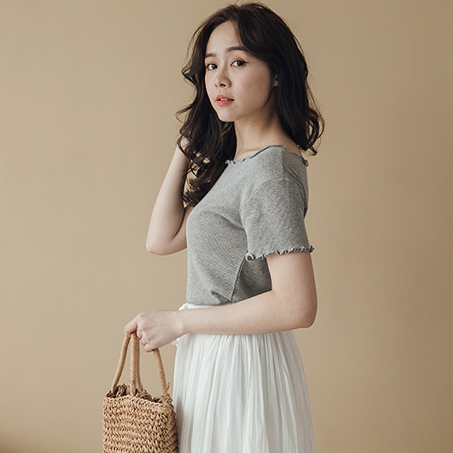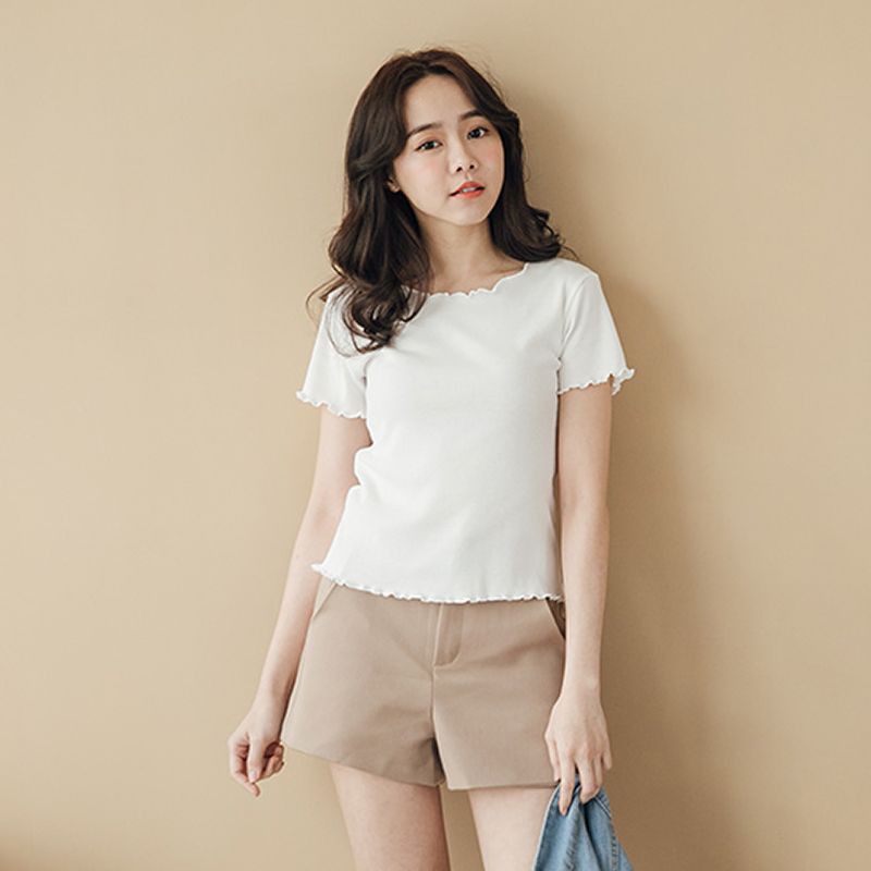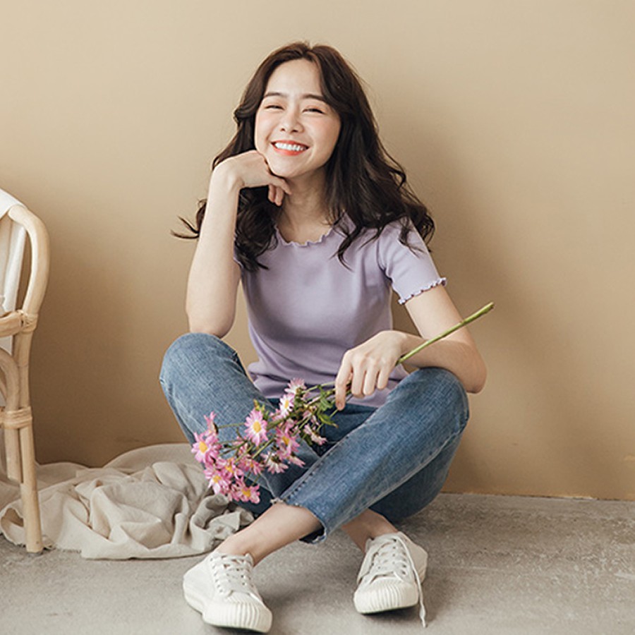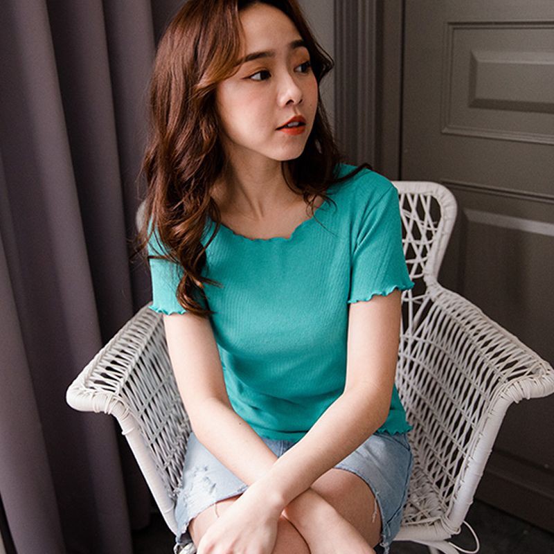 MIUSTAR 正韓 多色彈性羅紋拷克捲邊上衣(共9色)0503 預購【NL1418RE】