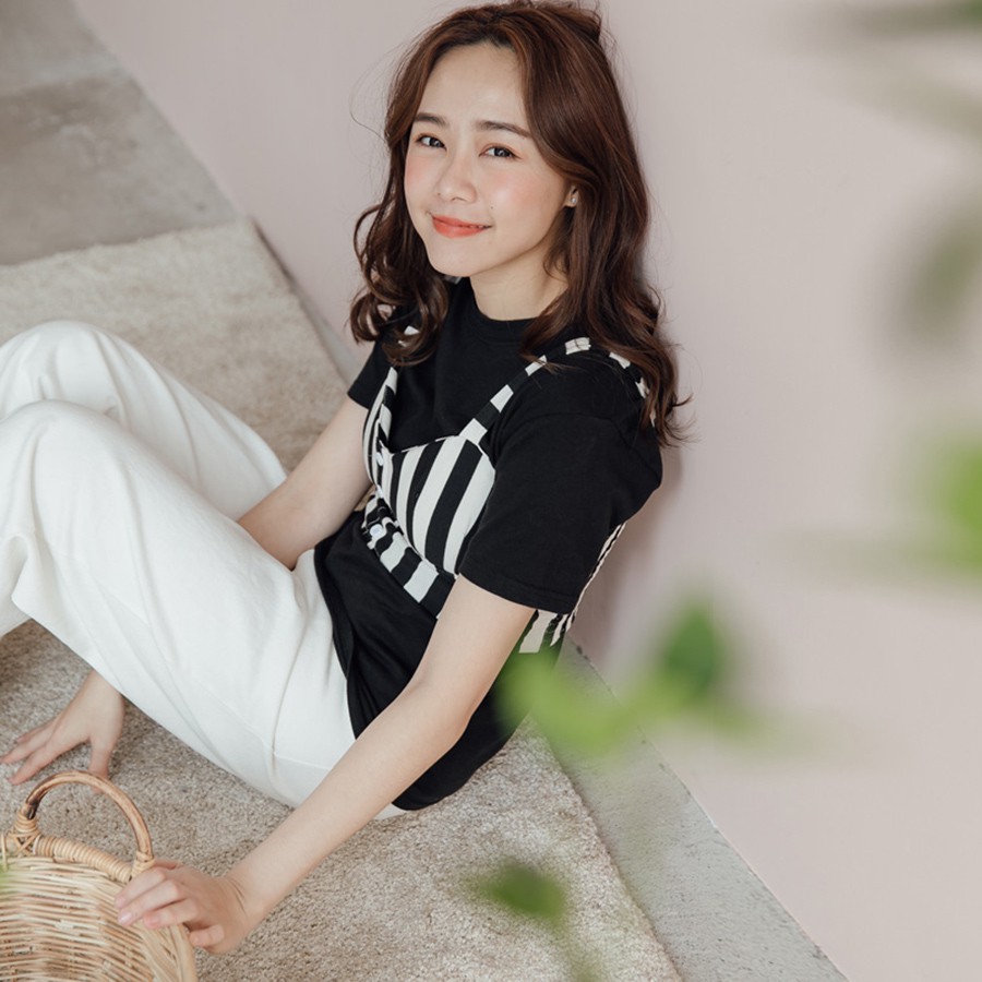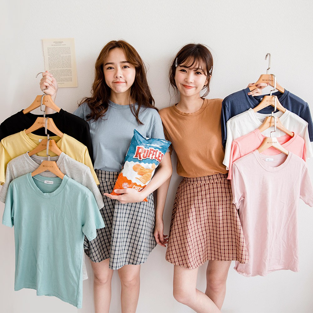 MIUSTAR 正韓 春夏百搭素色彈性短袖棉質上衣(共10色)0221 預購【NL1416RE】