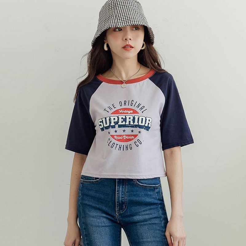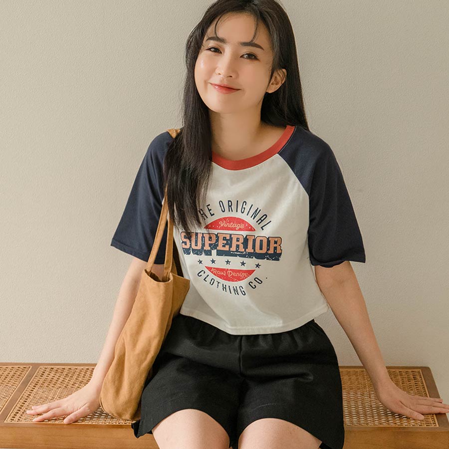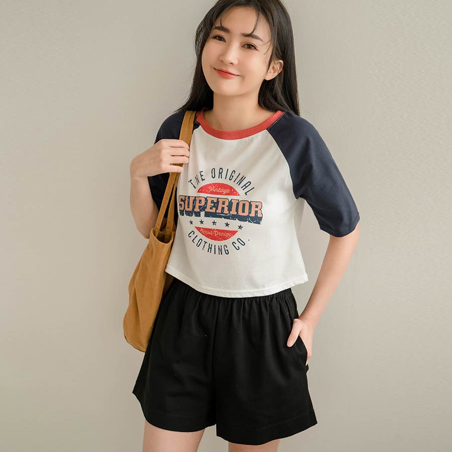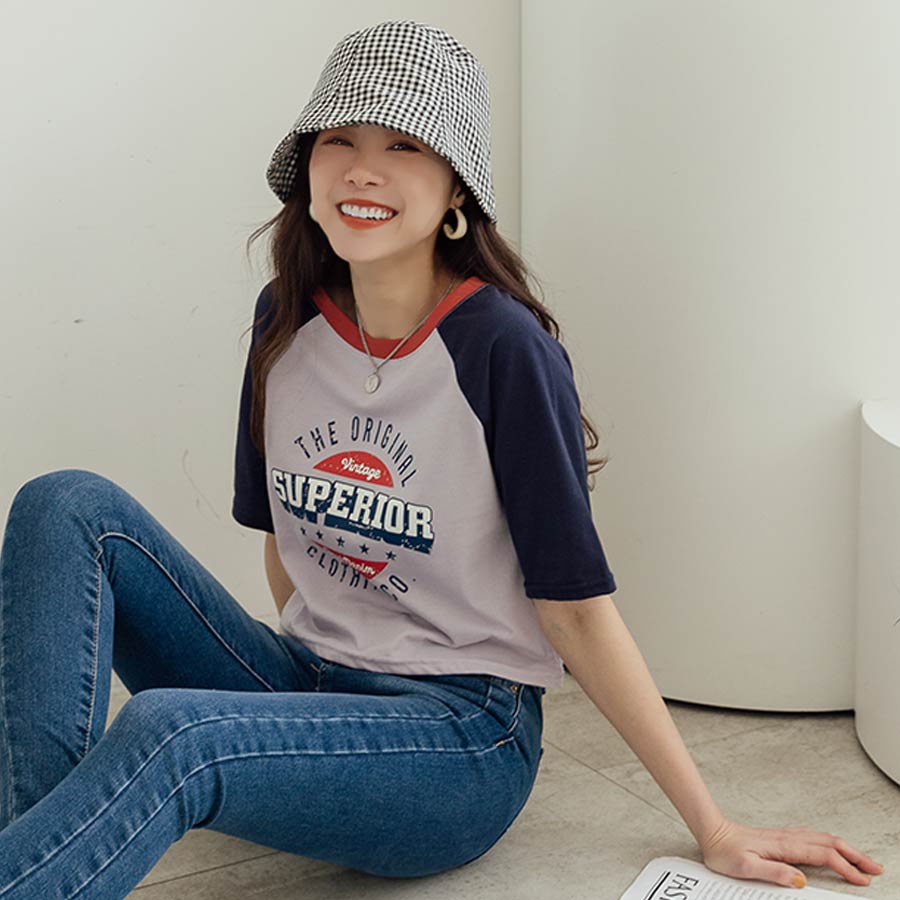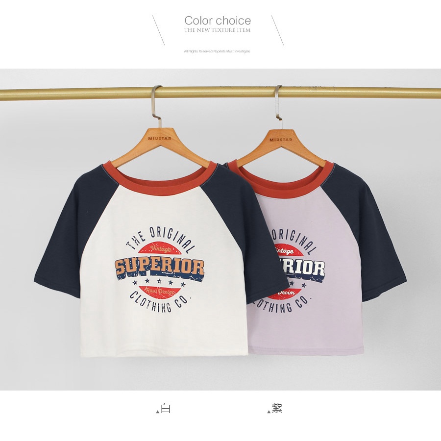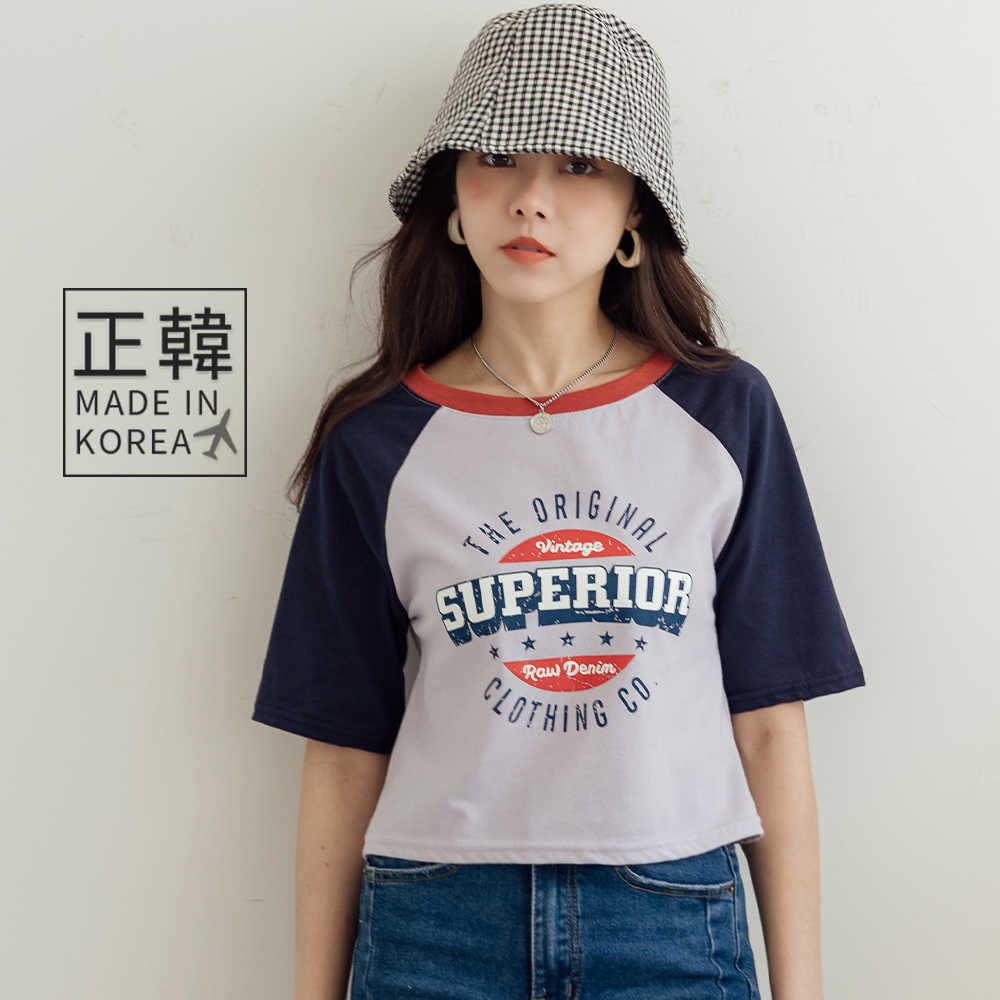 MIUSTAR 正韓.經典美式印花寬短版棉質上衣(共2色)0307預購【NL3482RE】