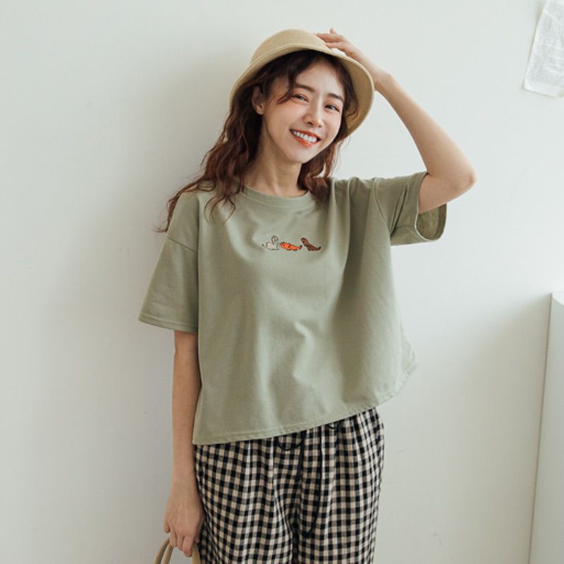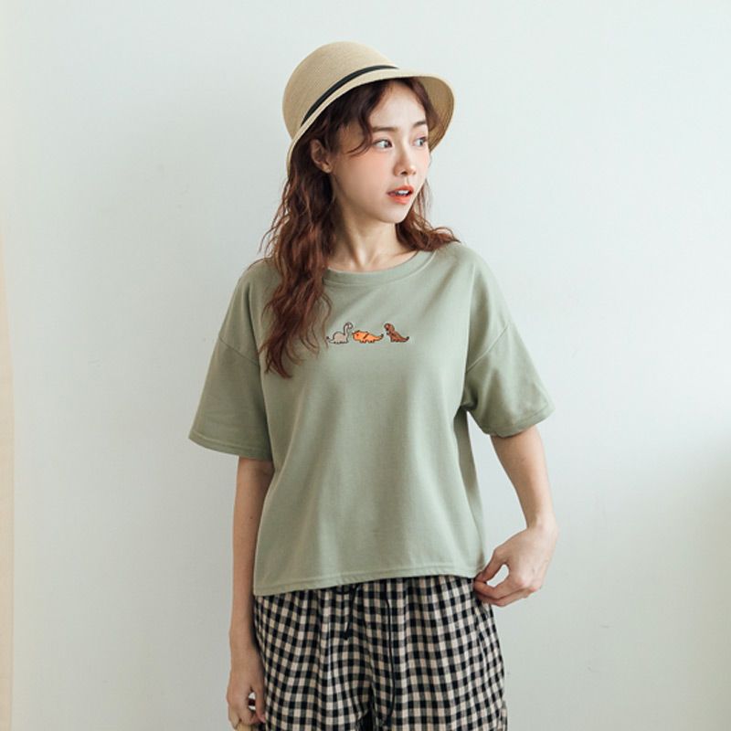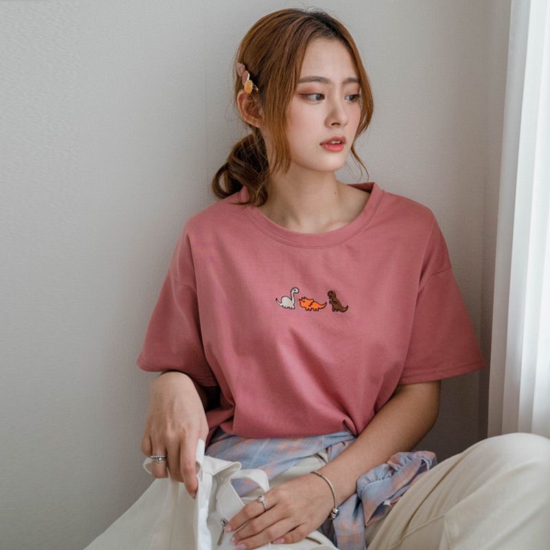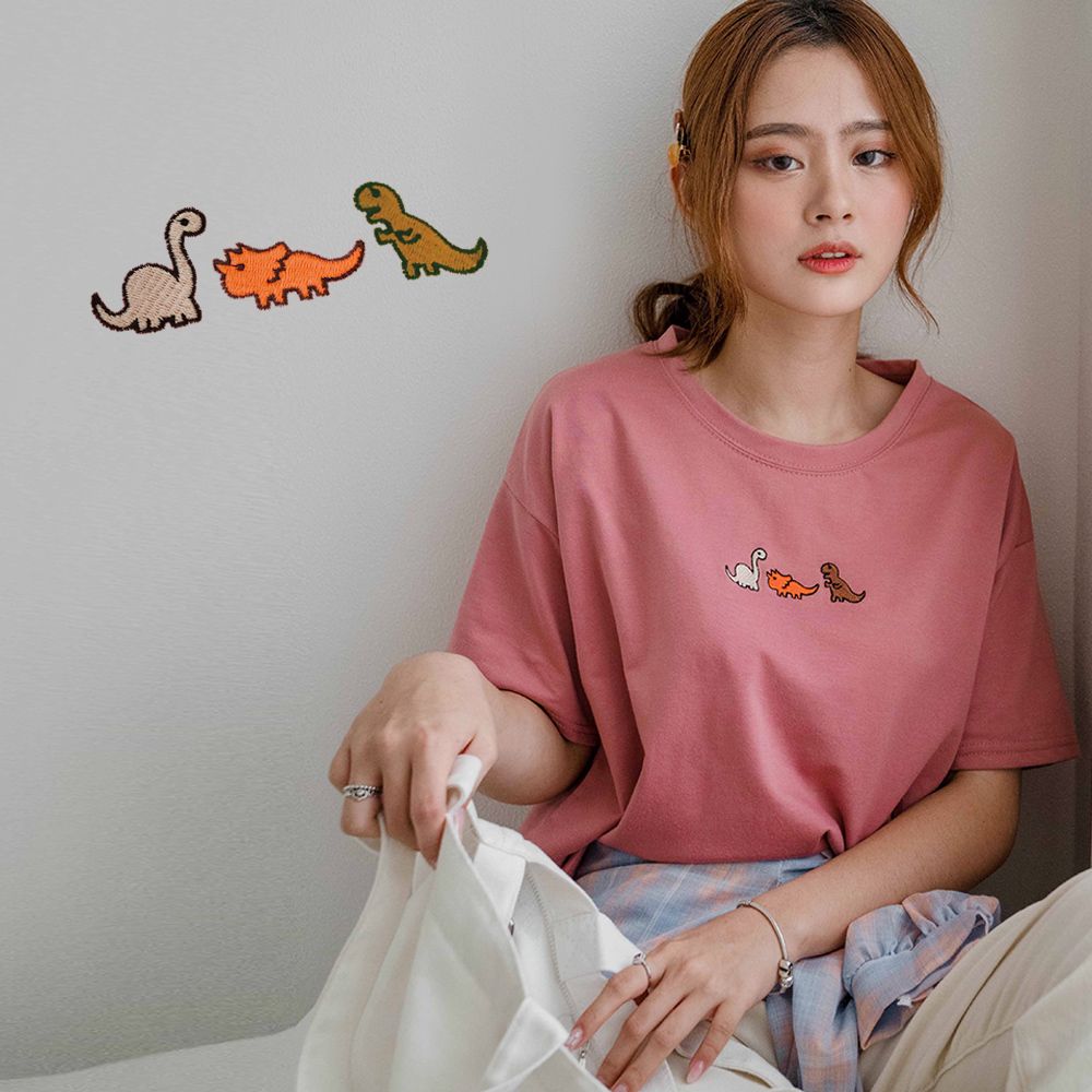 MIUSTAR 正韓 恐龍刺繡寬版棉質上衣(共2色) 0221 預購【NL1431RE】