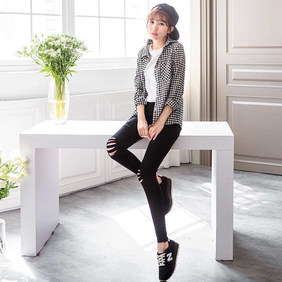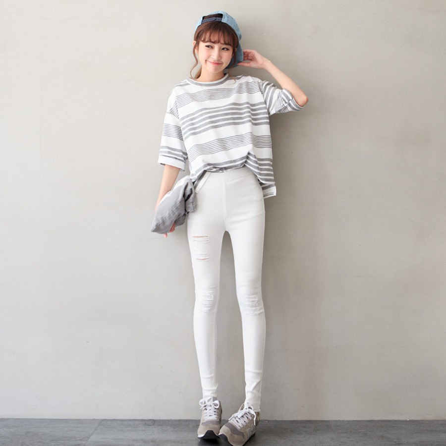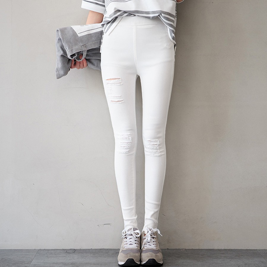 現貨↘下殺5折起★MIUSTAR 極度激瘦個性刷破彈力合身鬆緊長褲(共2色,S-L)0419 【NL1245EW】