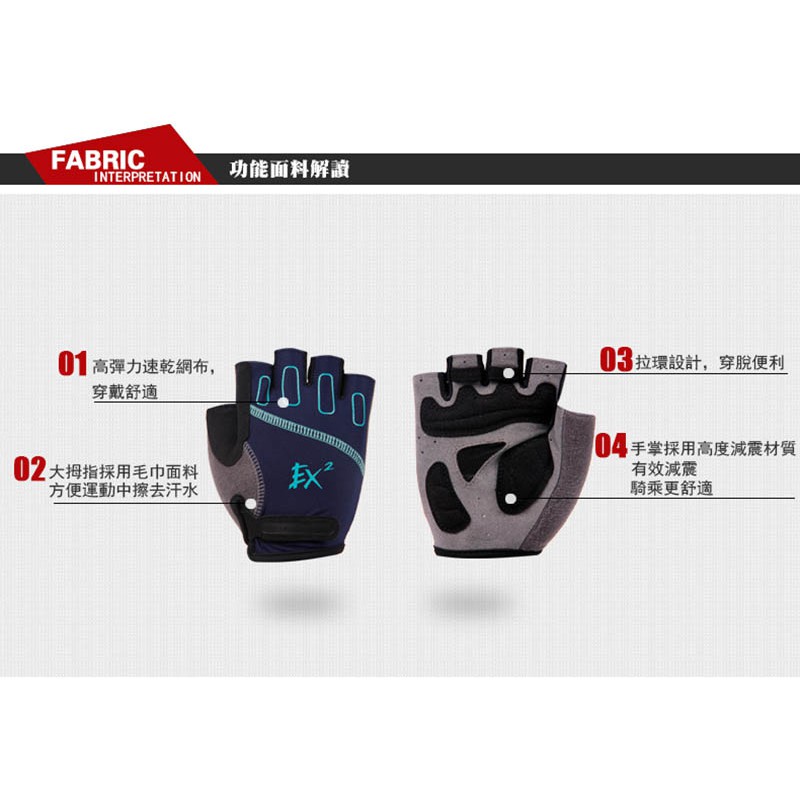 【天行者】Skywalkers/EX2 半指單車手套-天藍841313/全新現貨