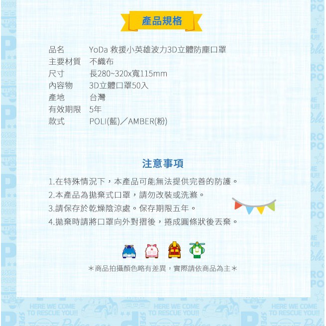 【YODA】波力3D立體醫療級兒童口罩(50入) - 二款可選