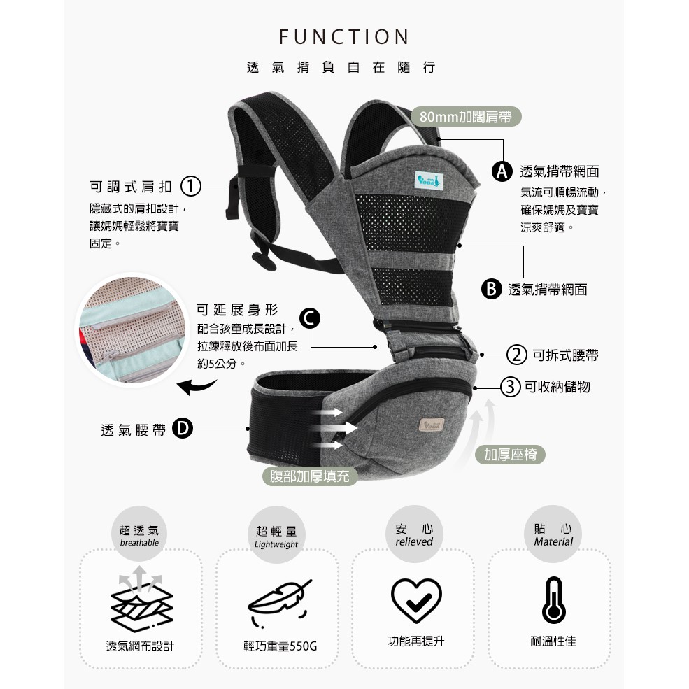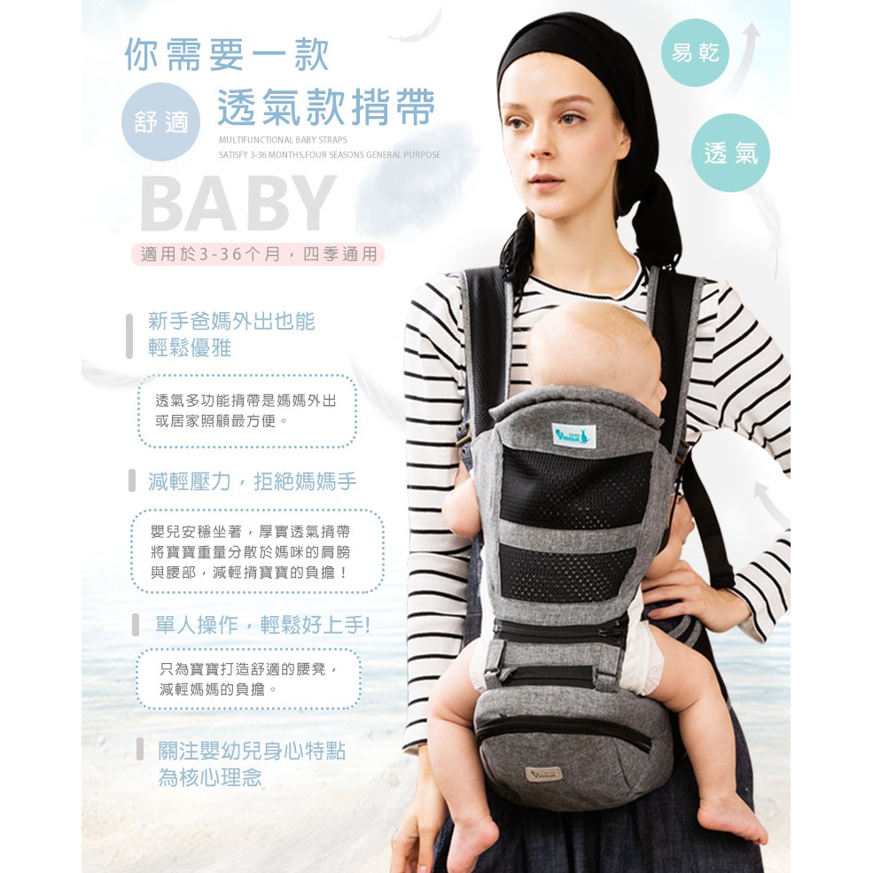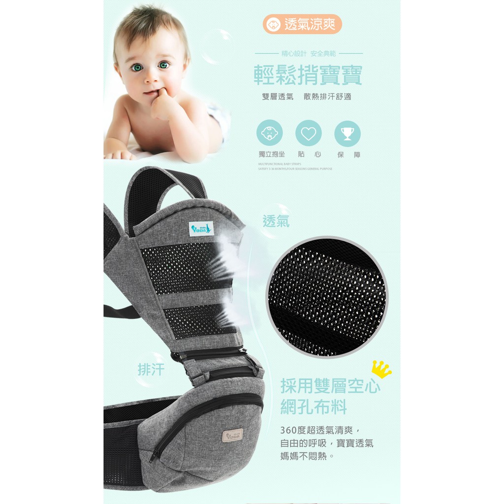 【YODA】 透氣款儲物座椅式揹帶 -三色可選