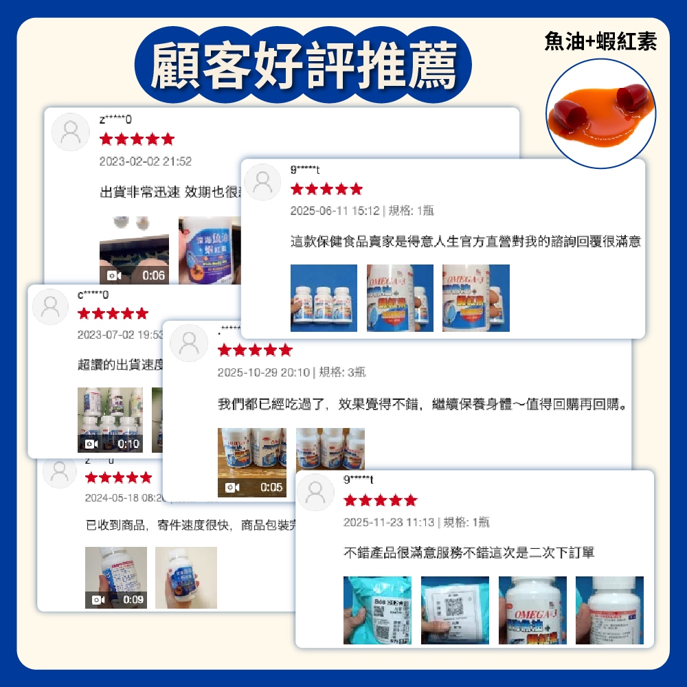 【得意人生】深海魚油+蝦紅素 (60粒) 魚油/蝦紅素/維他命E