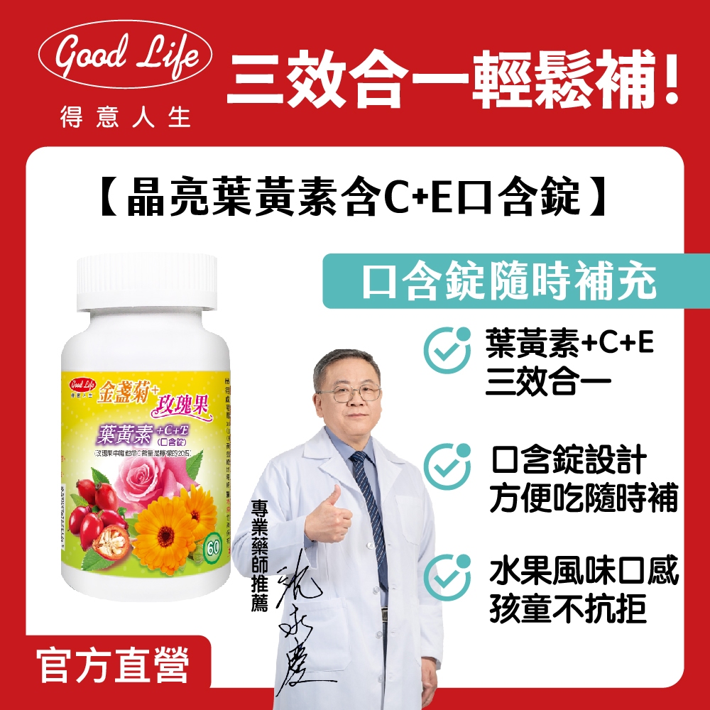 【得意人生】晶亮葉黃素含C+E口含錠 (60錠) 葉黃素/維他命C/維他命E