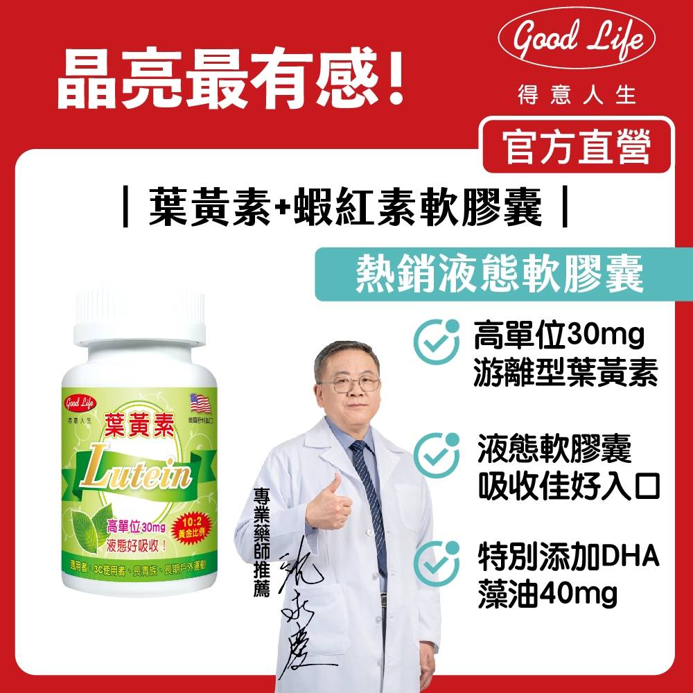 【得意人生】高單位葉黃素+蝦紅素軟膠囊 (60粒/瓶) 美國原料進口/游離型/高濃度葉黃素30mg/藻油DHA