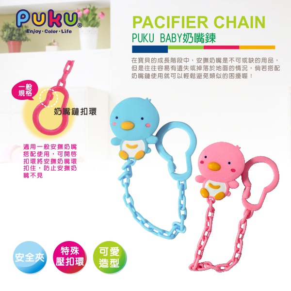 PUKU藍色企鵝 Puku baby奶嘴鍊(水/粉)