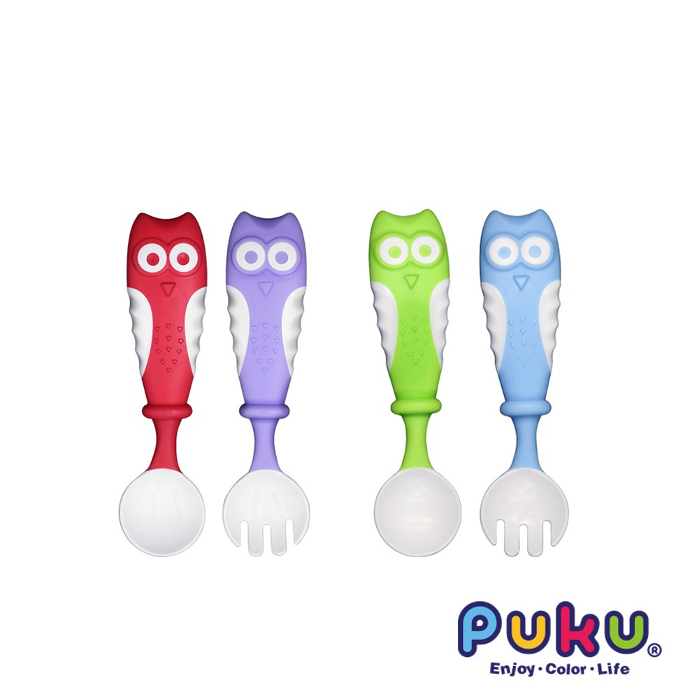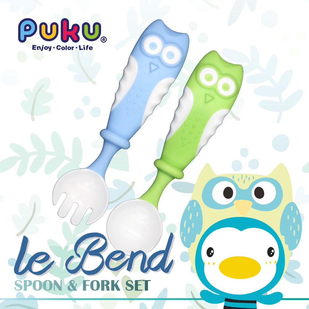 PUKU藍色企鵝 樂彎學習湯叉組(附收納盒)(兩色)