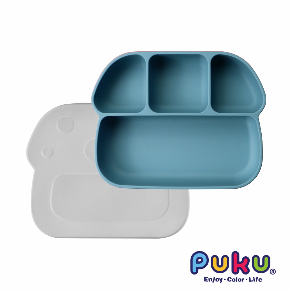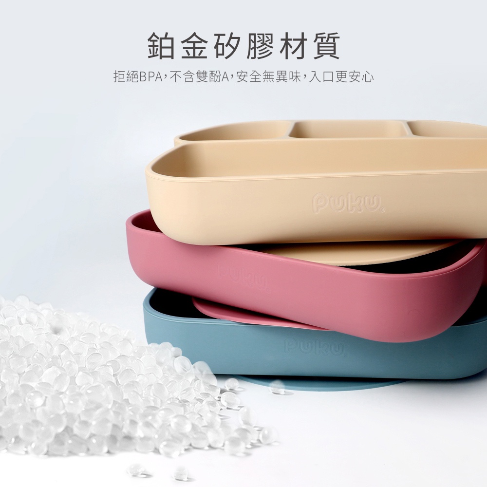 PUKU藍色企鵝 鉑金矽膠附蓋吸盤分隔餐盤(三色)
