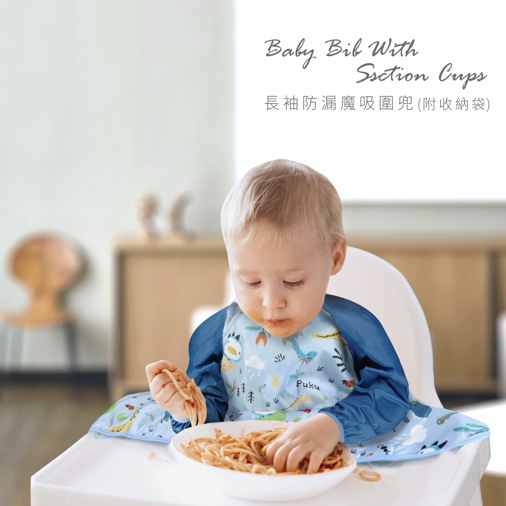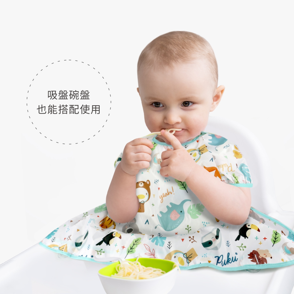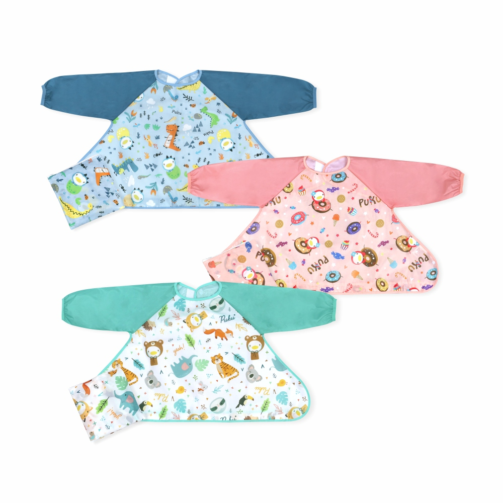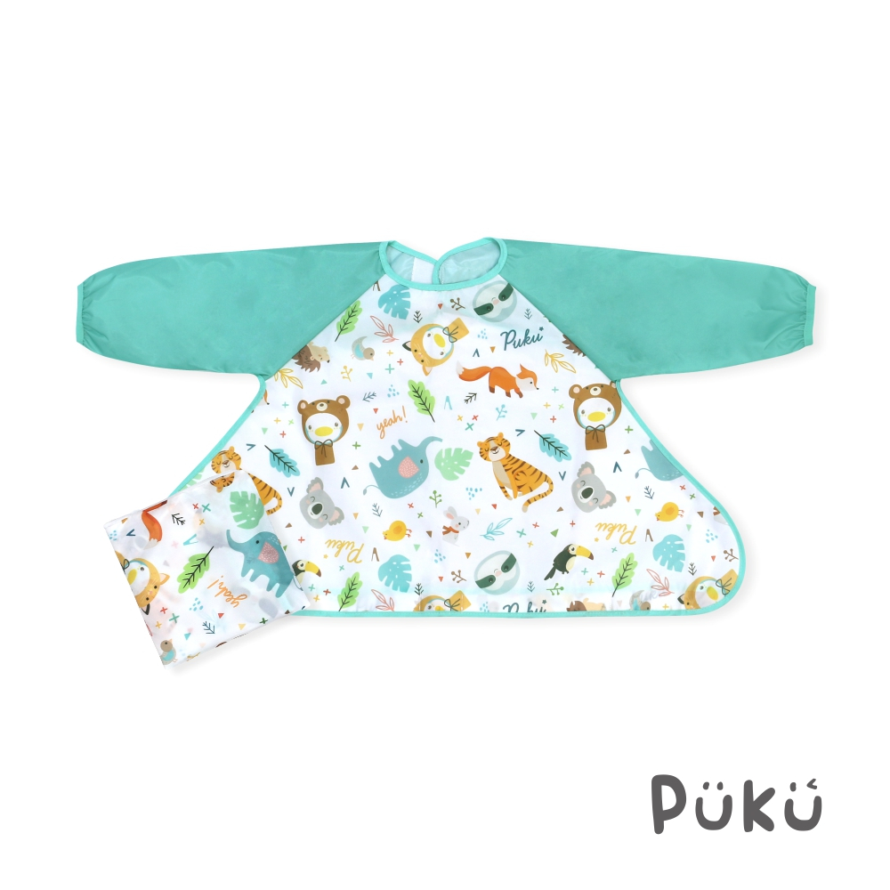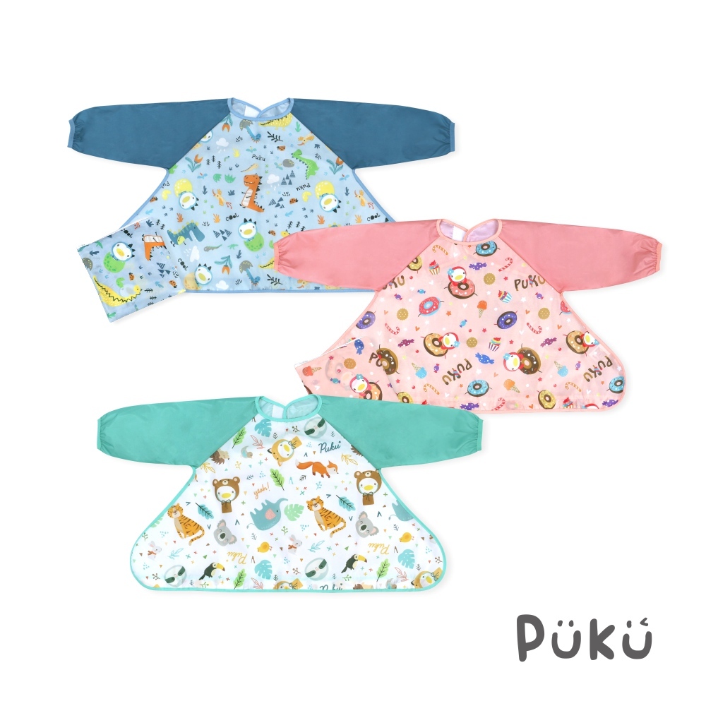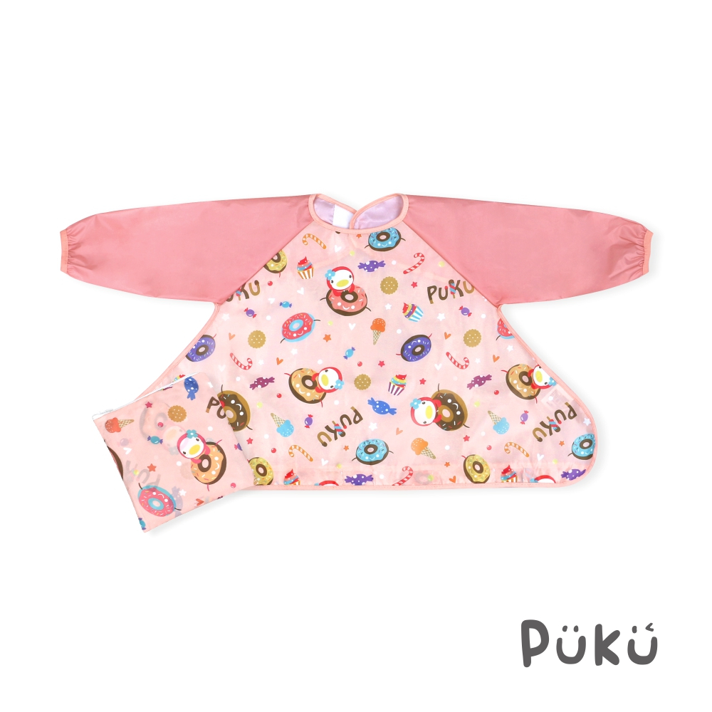 PUKU藍色企鵝 長袖防漏魔吸圍兜(附收納袋)(三款)
