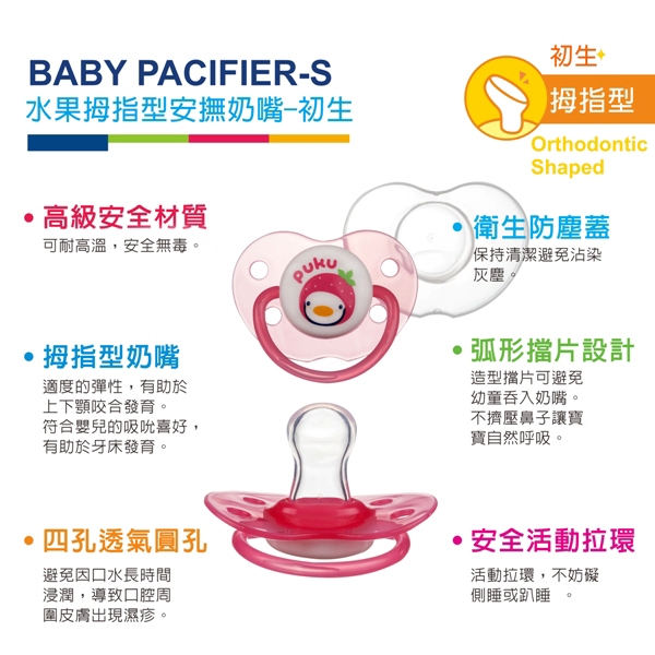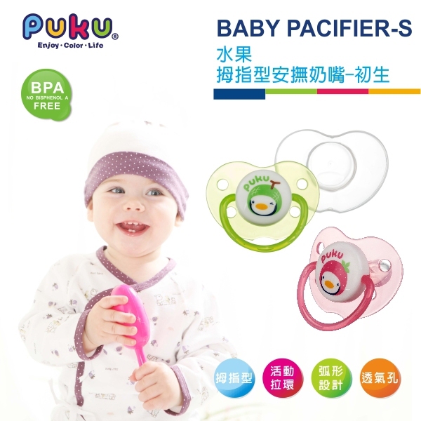 PUKU藍色企鵝 水果拇指型初生安撫奶嘴(兩色)
