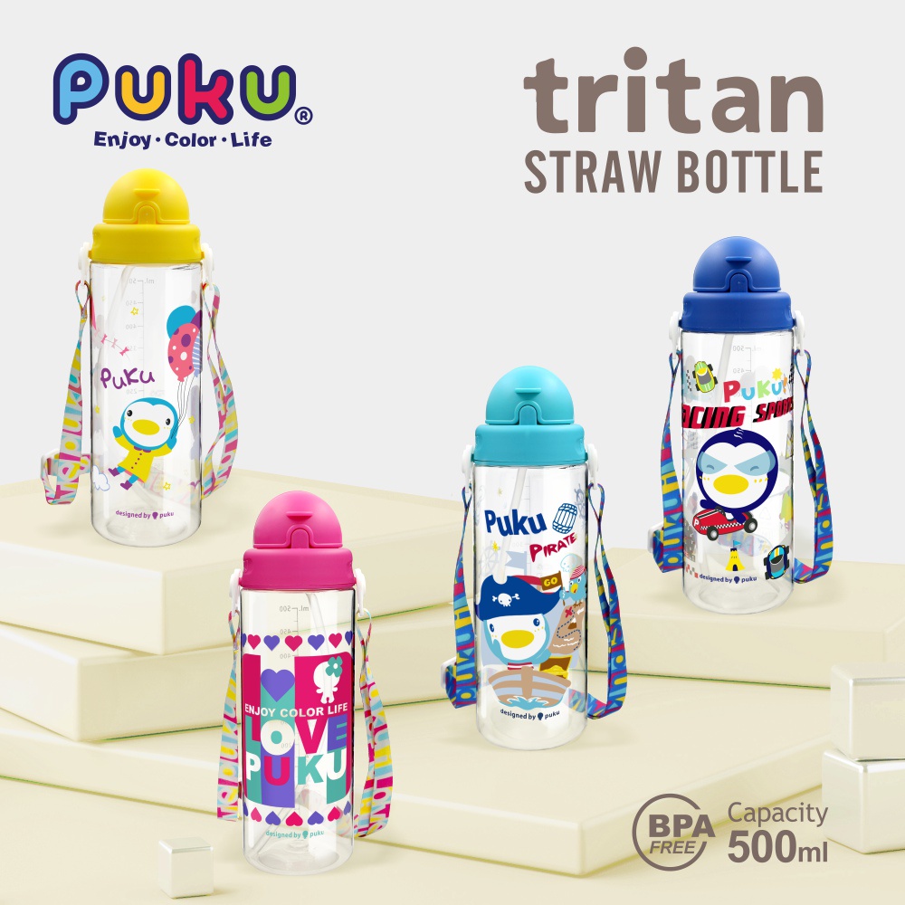 PUKU藍色企鵝 Tritan滑蓋水壺500ml(四款)