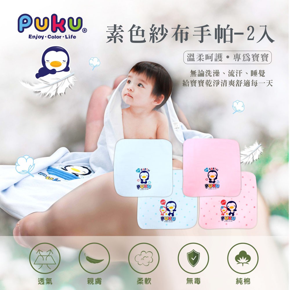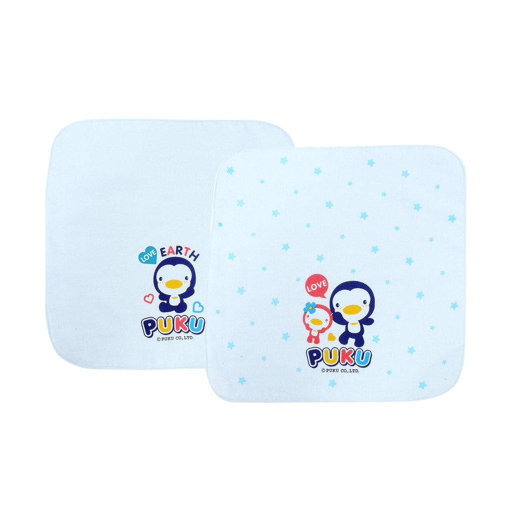 PUKU藍色企鵝 素色紗布手帕2入30x30cm(兩色)