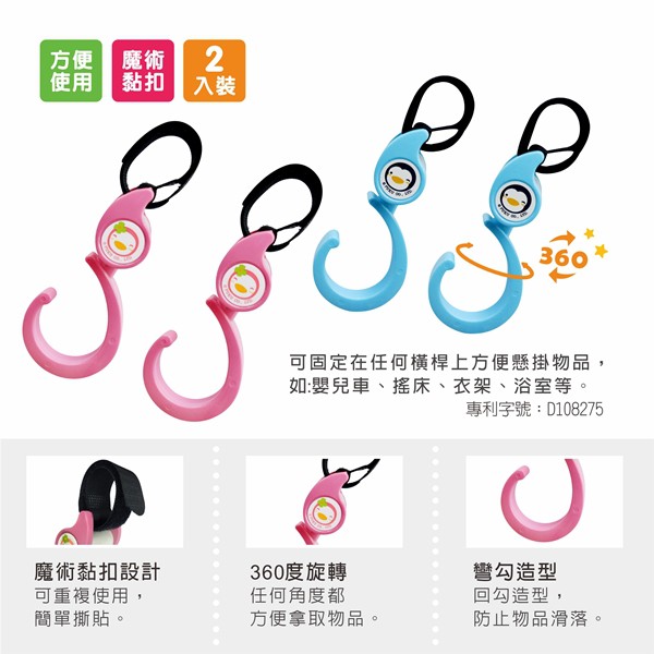 PUKU藍色企鵝 二代360度旋轉掛勾2入(兩色)