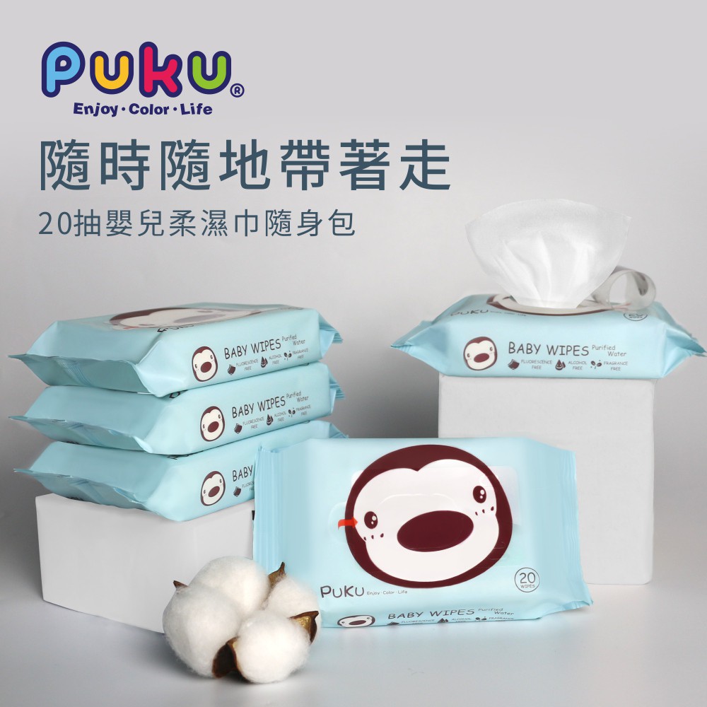 PUKU藍色企鵝 20抽嬰兒柔濕巾隨身包 (多件優惠)