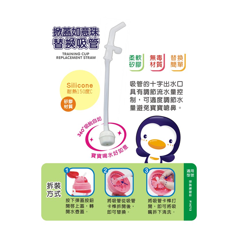 PUKU藍色企鵝 掀蓋如意珠替換吸管(P11314)