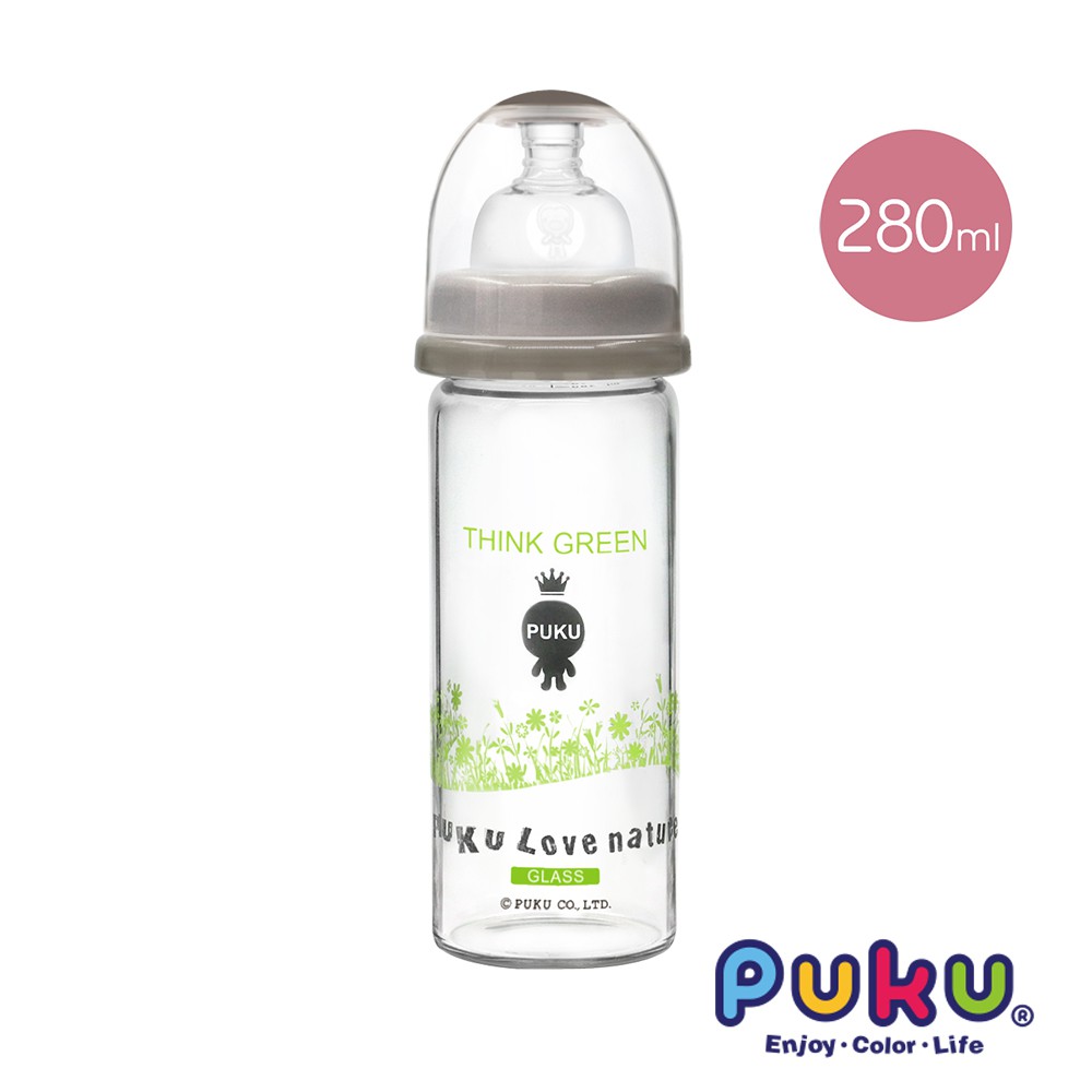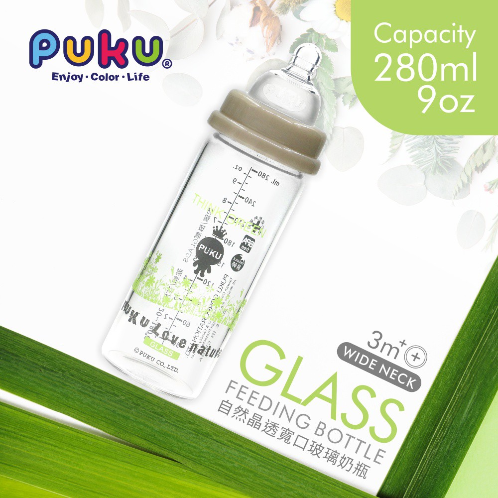 PUKU藍色企鵝 自然晶透寬口玻璃奶瓶280ml