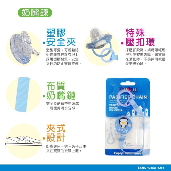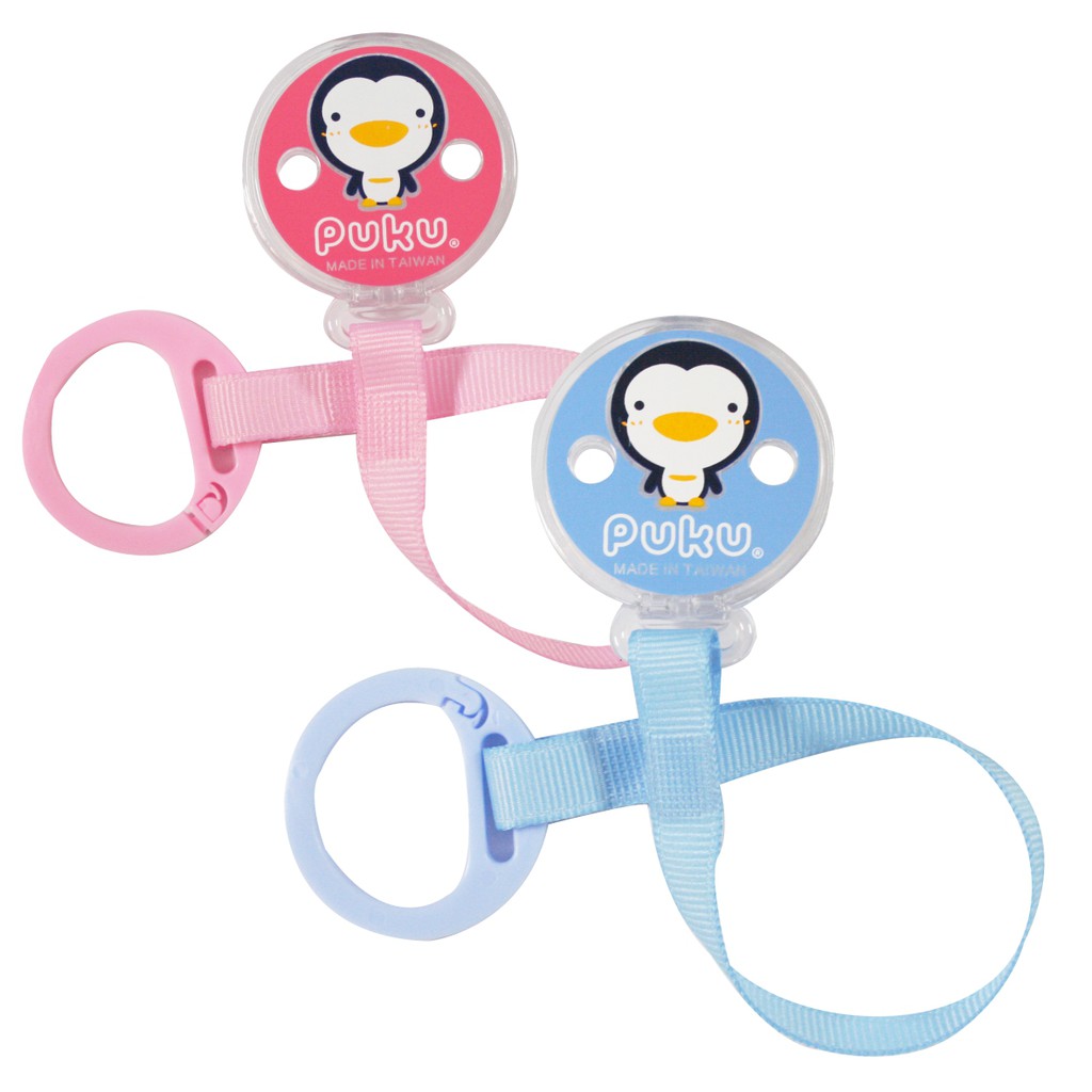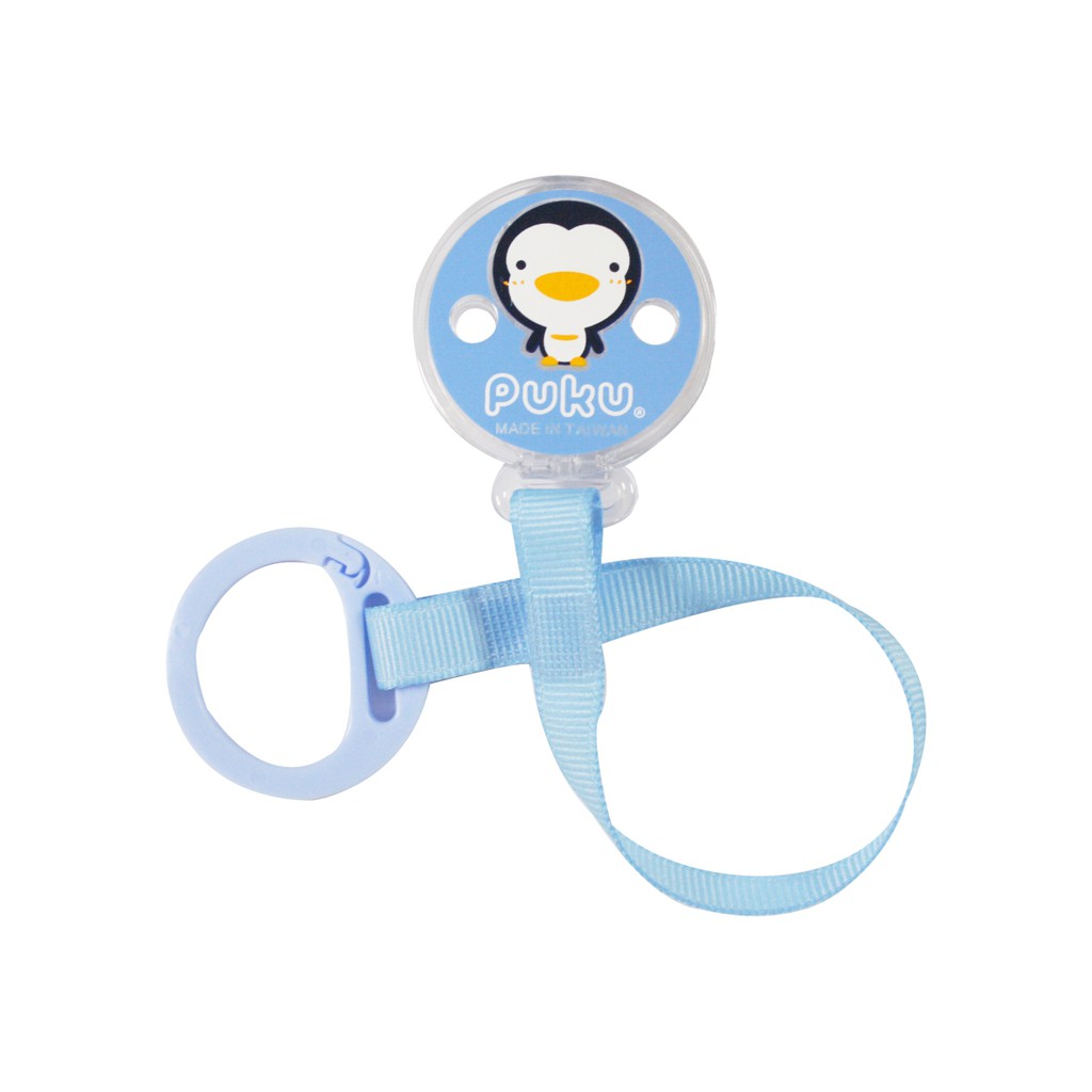 PUKU藍色企鵝 大頭Q夾式布質奶嘴鍊(兩色)