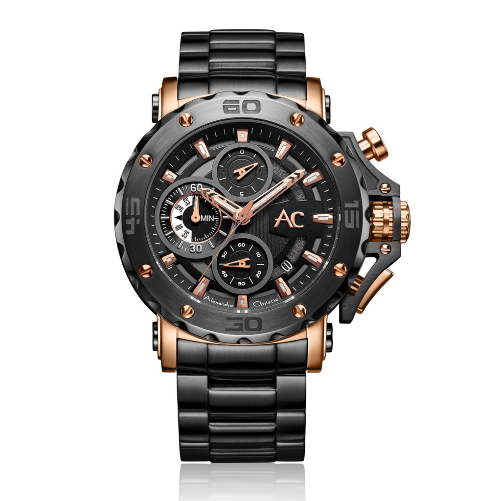 【Alexandre Christie】9205MCBBRBA 玫瑰金 石英鋼帶 三眼計時 AC手錶 人氣暢銷款