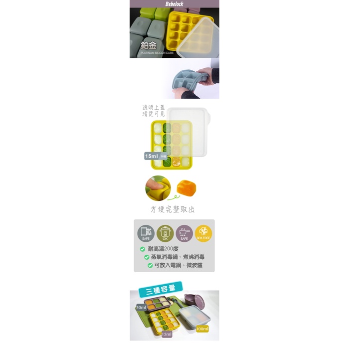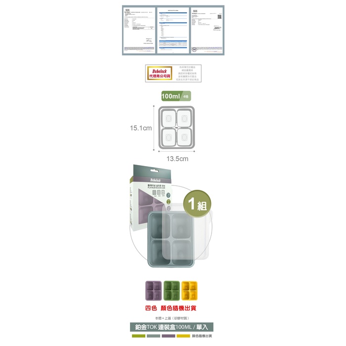BeBeLock 箔金TOK副食品連裝盒100ml-黃/綠/紫/灰 食品級矽膠 副食品分裝 原廠公司貨 寶寶共和國