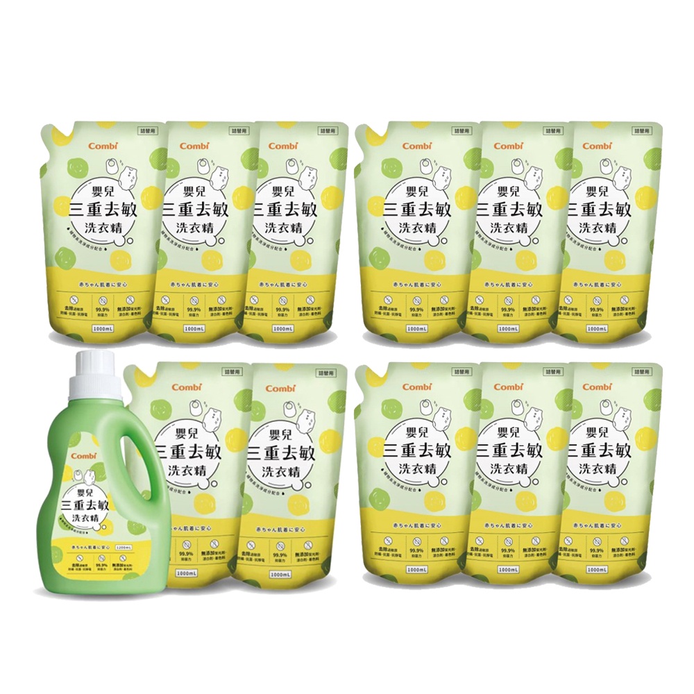 Combi 康貝 嬰兒三重去敏洗衣精 1200ml瓶裝+補充包1000ml X11包 箱購優惠 寶寶共和國