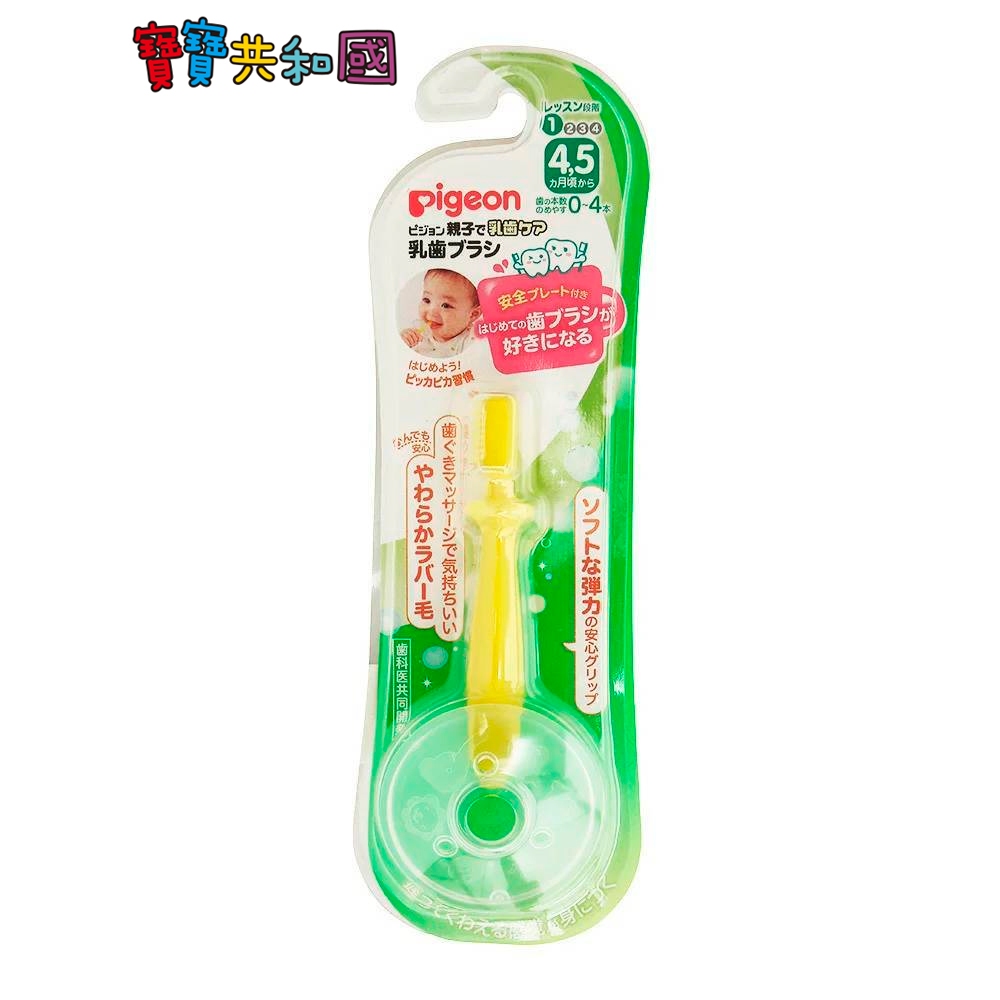 Pigeon 貝親 第一階段學習牙刷(黃) 4m+ 附安全檔板 寶寶牙刷 嬰兒牙刷 原廠公司貨 寶寶共和國