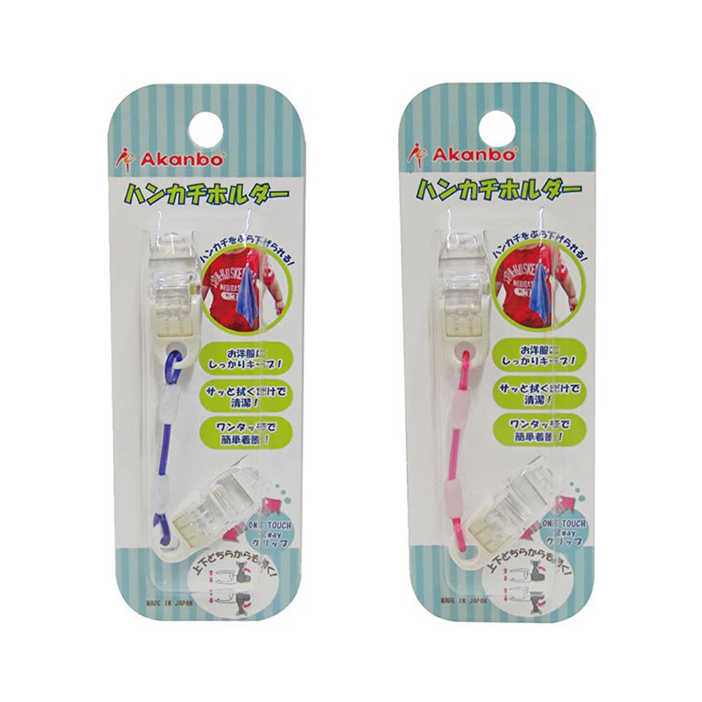 日本 AKANBOU 日製手帕巾鏈夾/萬用夾-粉色/藍色 手帕夾 名牌夾 日本製造 原廠公司貨 寶寶共和國