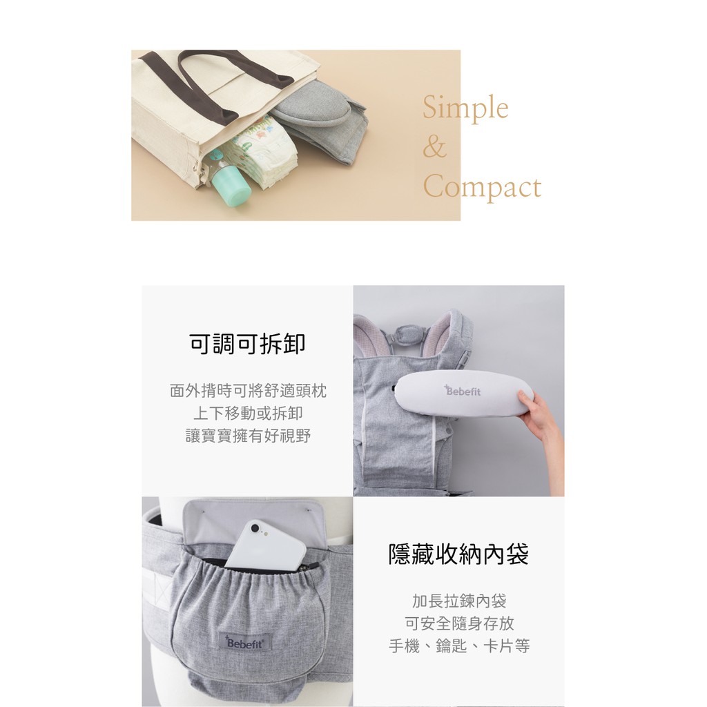 韓國 Bebefit S7旗艦款智能嬰兒揹帶 午夜藍/極致灰/淺雲灰/奶油米 多款顏色 多種揹法 透氣舒適 寶寶共和國
