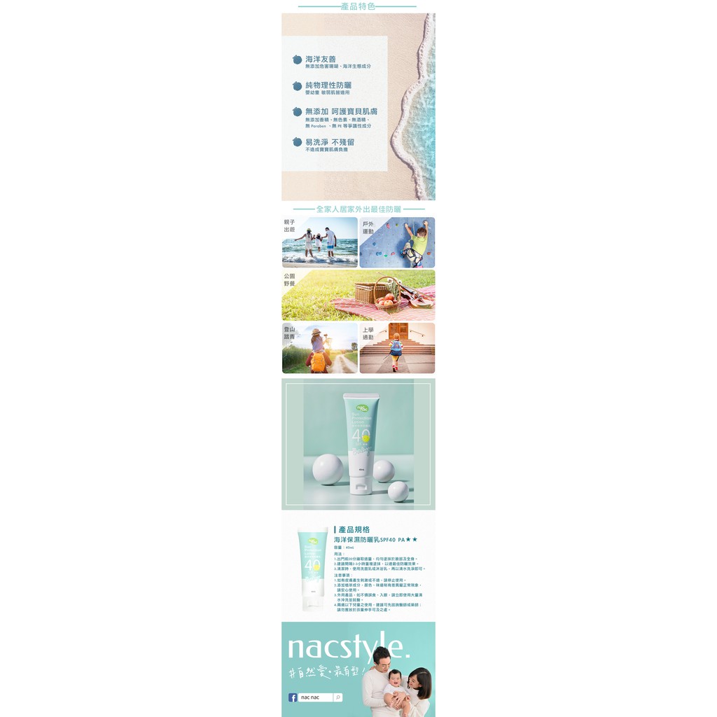 nac nac 海洋保濕防曬乳40ml 寶寶防曬 海洋友好 物理性防曬 全膚質適用 原廠公司貨 寶寶共和國