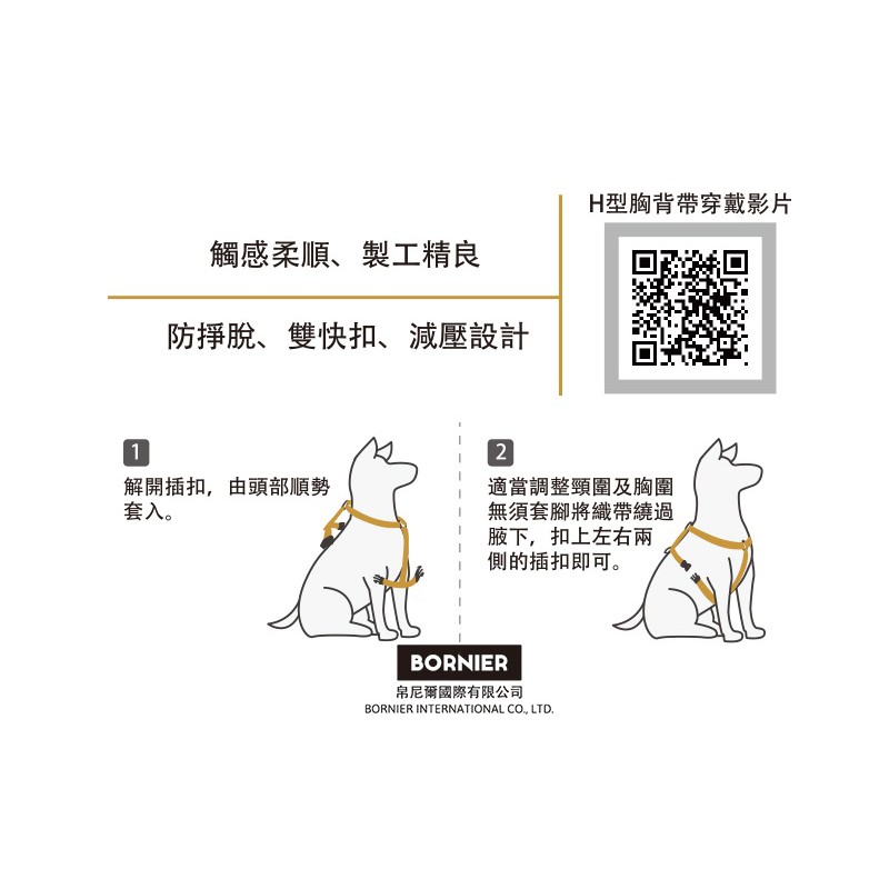 BORNIER(S加寬版)彩紋反光H型胸背帶SW 多款花色可選【BornierPets帛尼爾國際】
