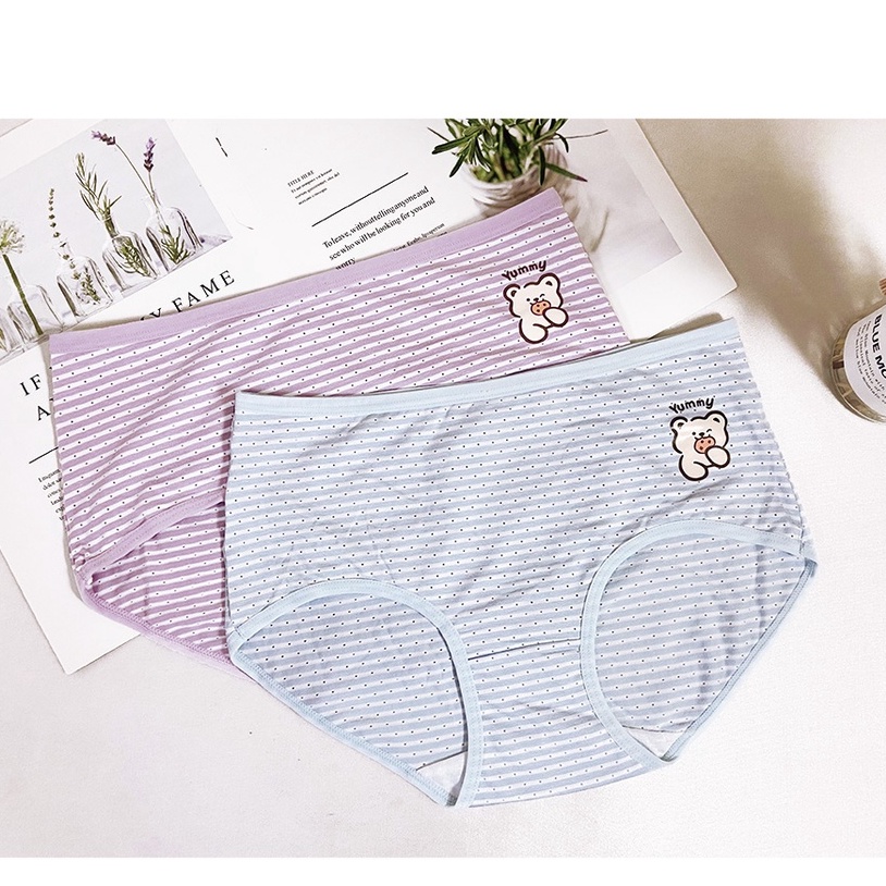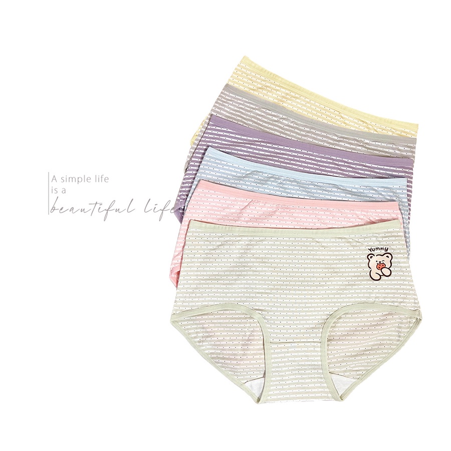 Pink Lady 餅乾小熊 6件內褲組 親膚高棉 棉質內褲 透氣網眼 棉柔條紋印花 中腰 包臀內褲 9125