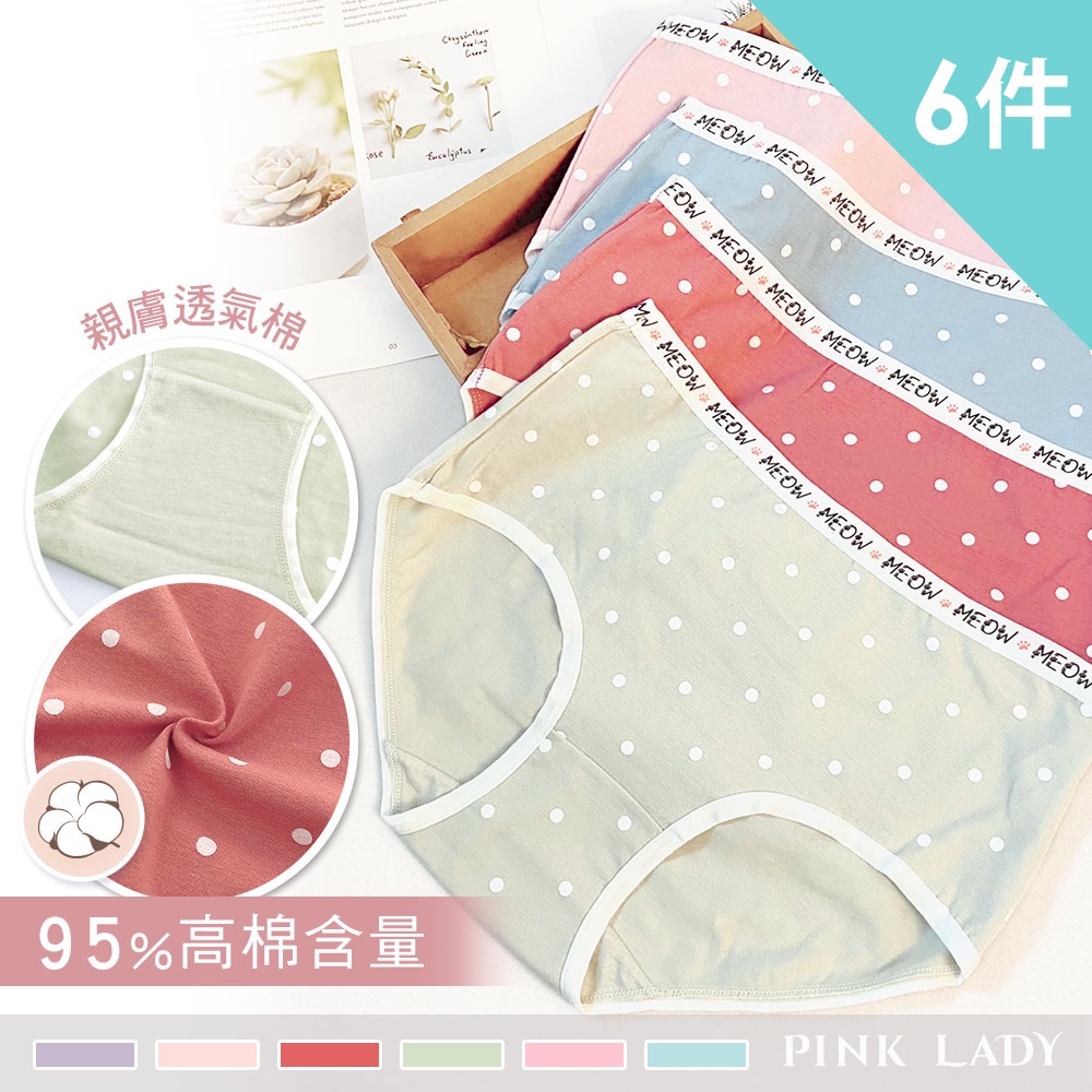Pink Lady 6件內褲組【親膚高棉】點點印花 95%高棉柔舒適親膚中腰內褲 9101