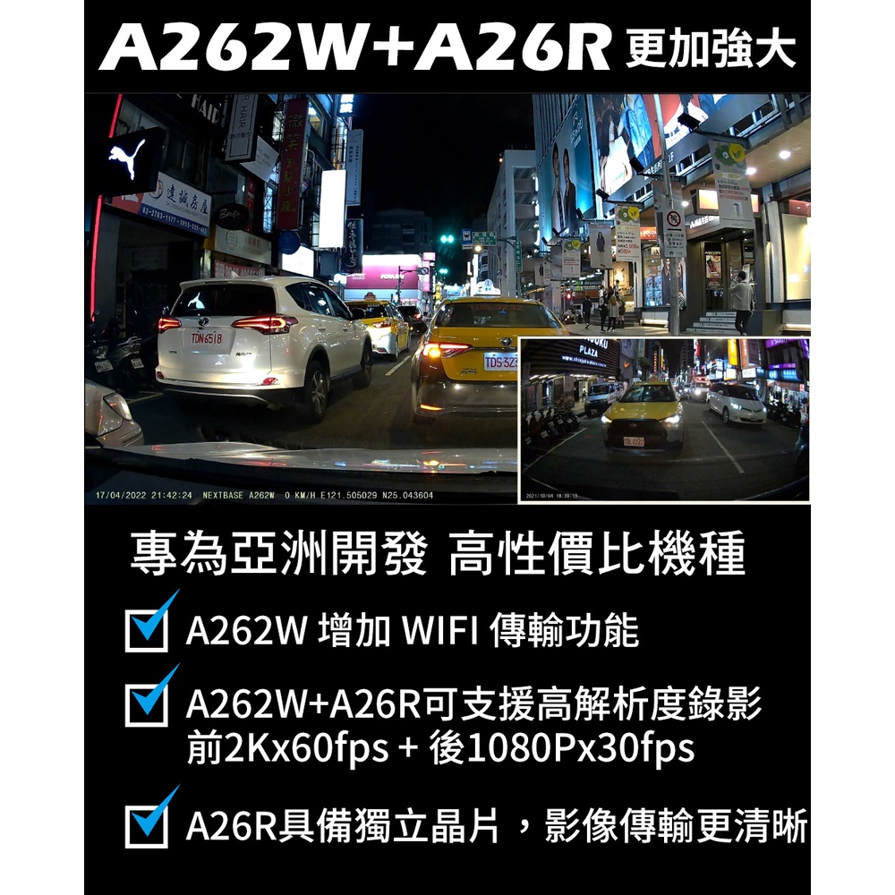 NEXTBASE A262W+A26R 2K 60fps WiFi GPS 行車紀錄器