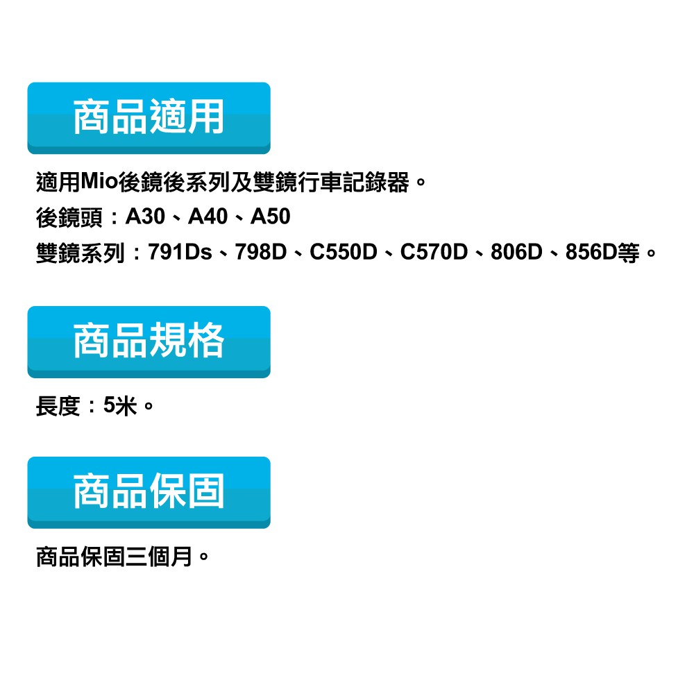 MIO【 5米後鏡頭傳輸線 】 Mio 6/7/C 系列可支援雙鏡頭機種