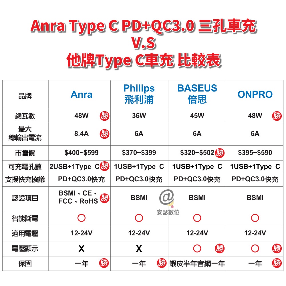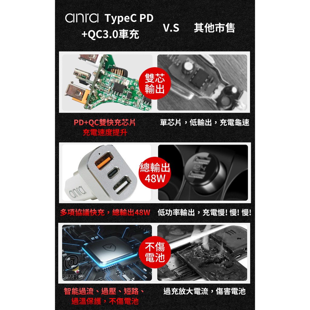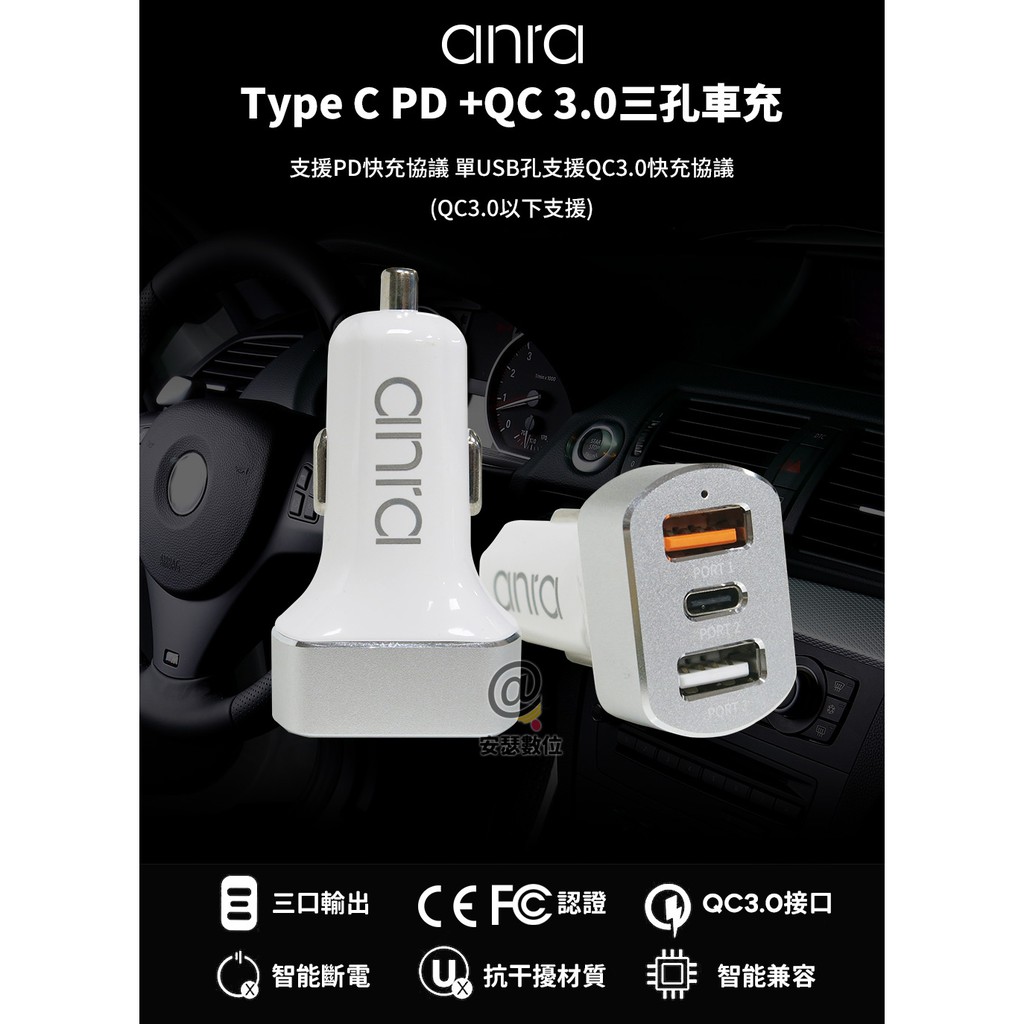 【anra】 Type-C PD +QC 3.0 快充 車充 QC+PD 雙快充車充頭