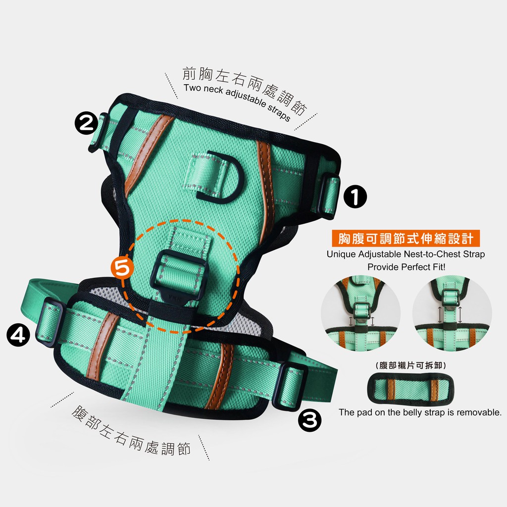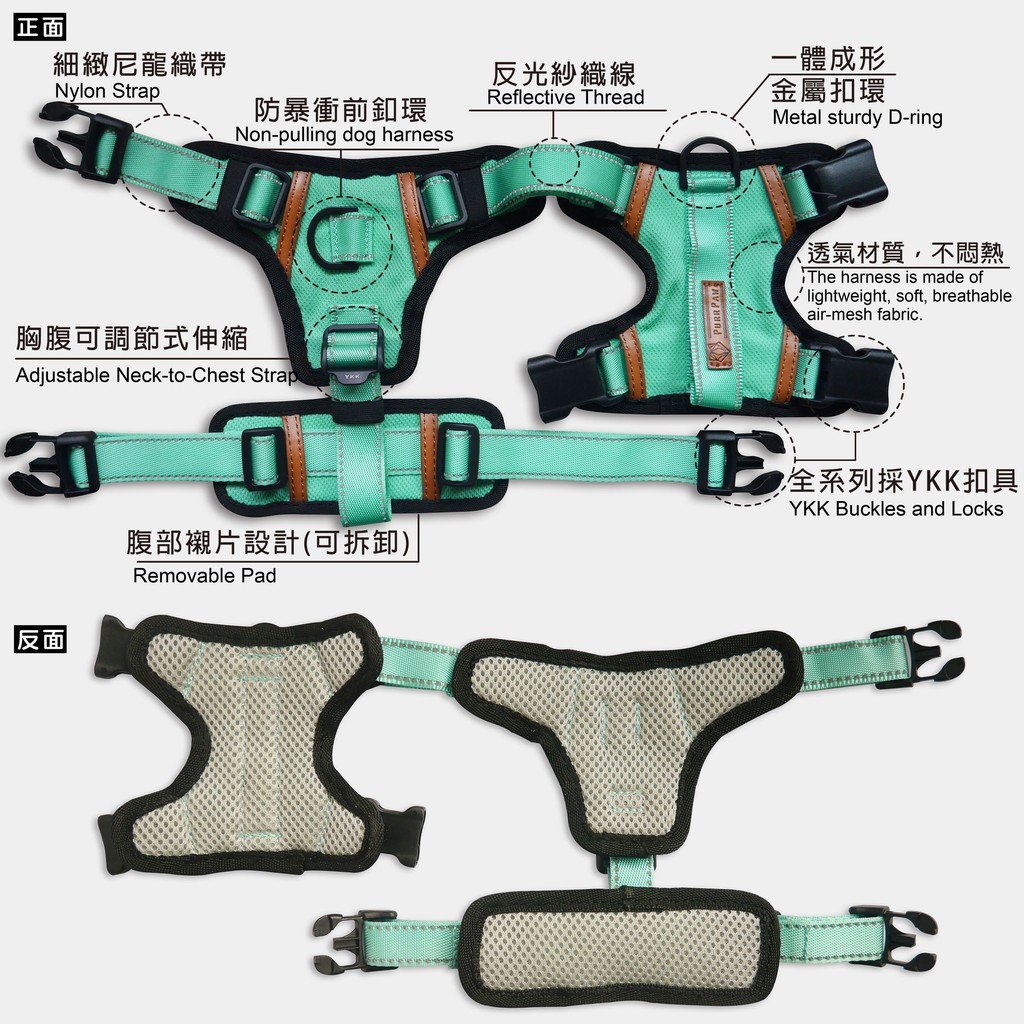 PurrPaw 呼嚕抱抱|Pawfect-Fit! 寵物胸背帶(L)-薄荷綠