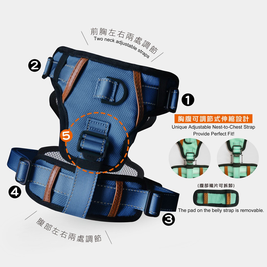 PurrPaw 呼嚕抱抱|Pawfect-Fit! 寵物胸背帶(L)-海軍藍