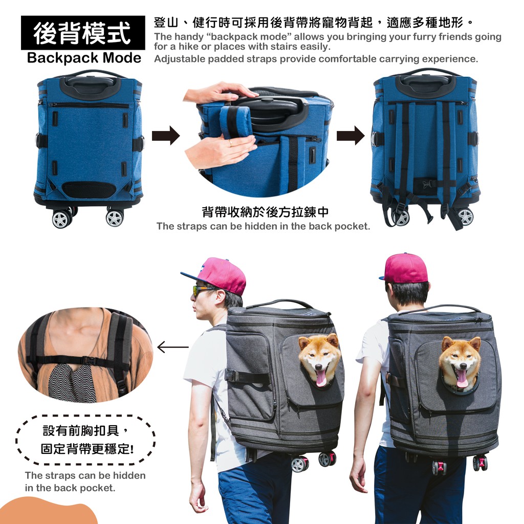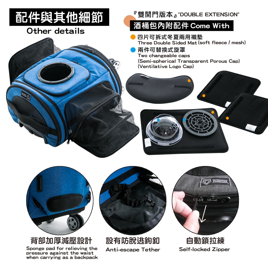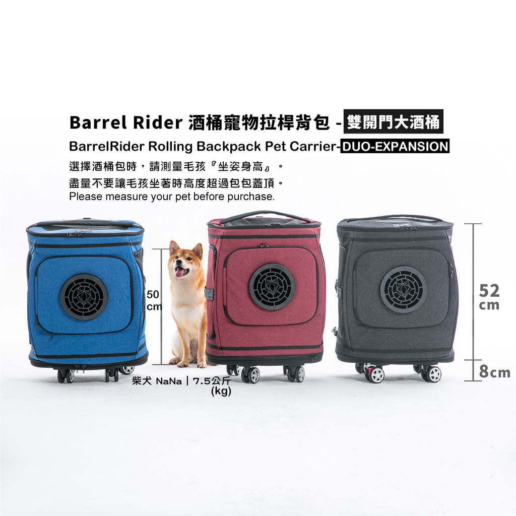 PurrPaw 呼嚕抱抱|『雙開門版本』Barrel Rider 酒桶寵物拉桿背包(大)-牛仔藍