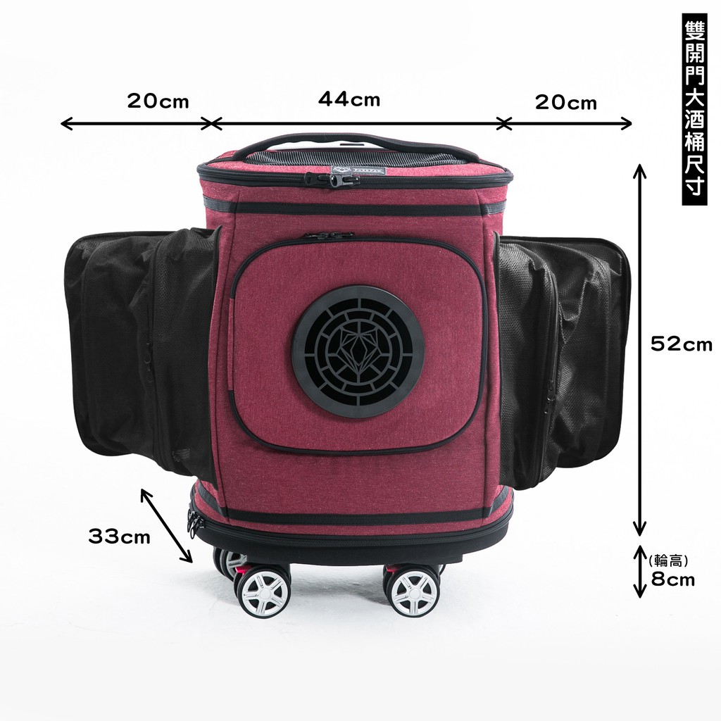 PurrPaw 呼嚕抱抱|『雙開門版本』Barrel Rider 酒桶寵物拉桿背包(大)-勃根地酒紅
