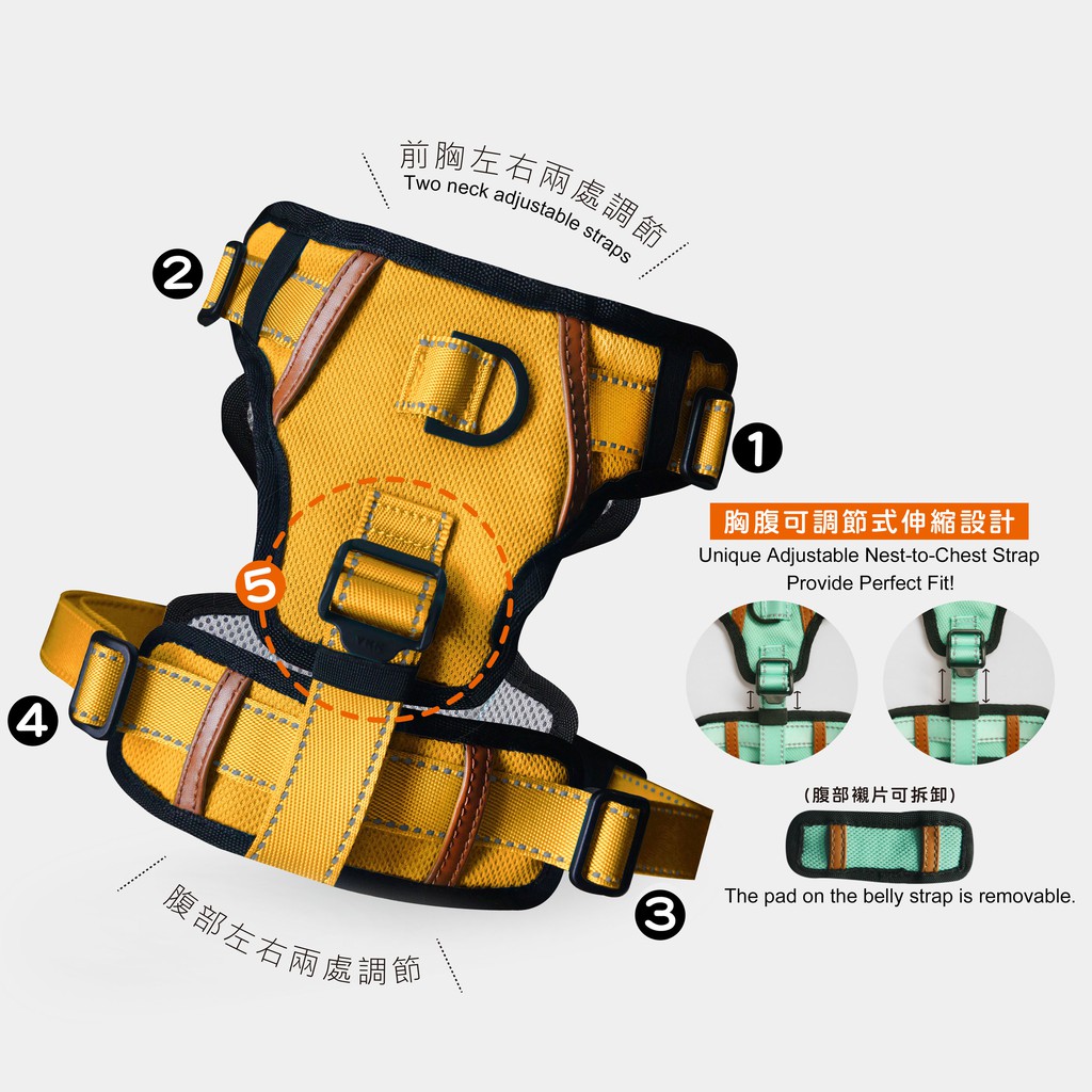 PurrPaw 呼嚕抱抱|Pawfect-Fit! 寵物胸背帶(XL)-豔陽黃