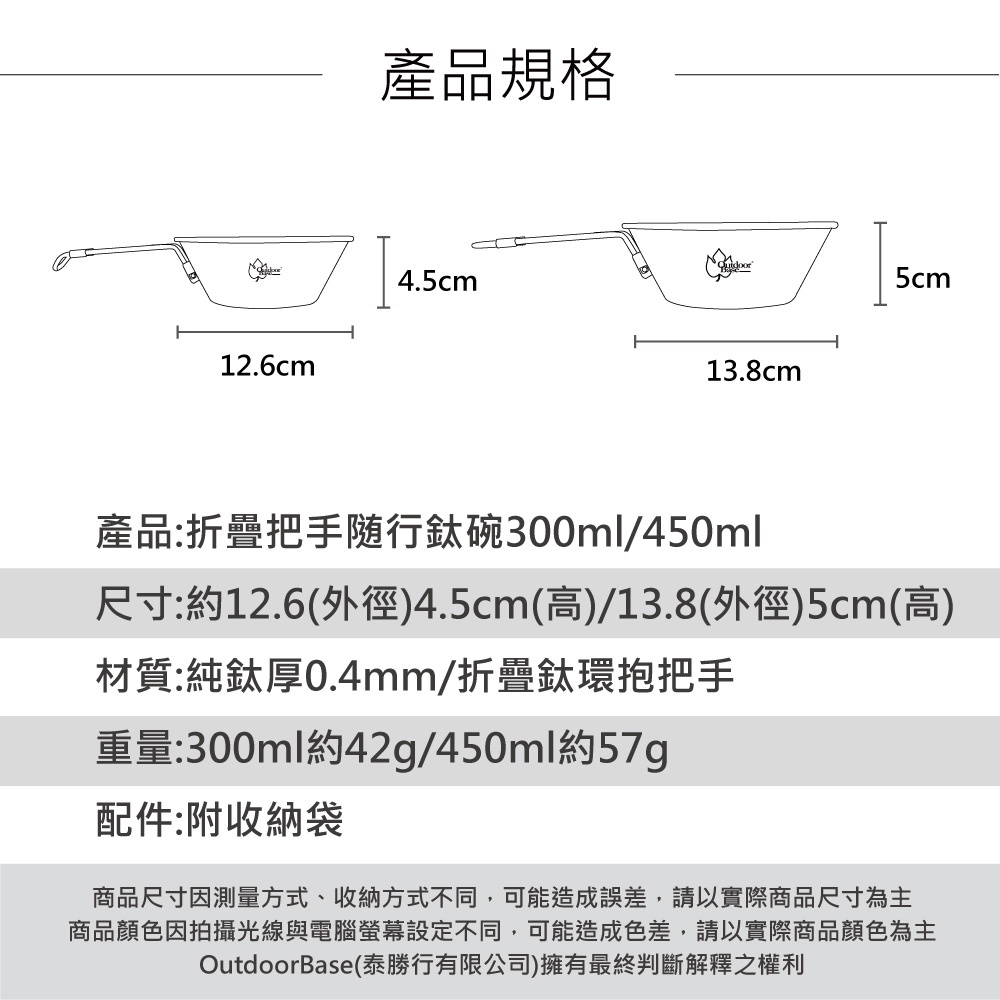 【Outdoorbase】野夫炊煙-鈦系列-隨行鈦碗-450ml-27401