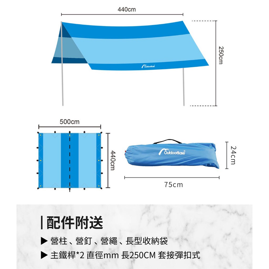 【Outdoorbase】大草原天幕炊事帳-21287(沙灘 天幕帳 車邊天幕 露營天幕 延伸天幕)